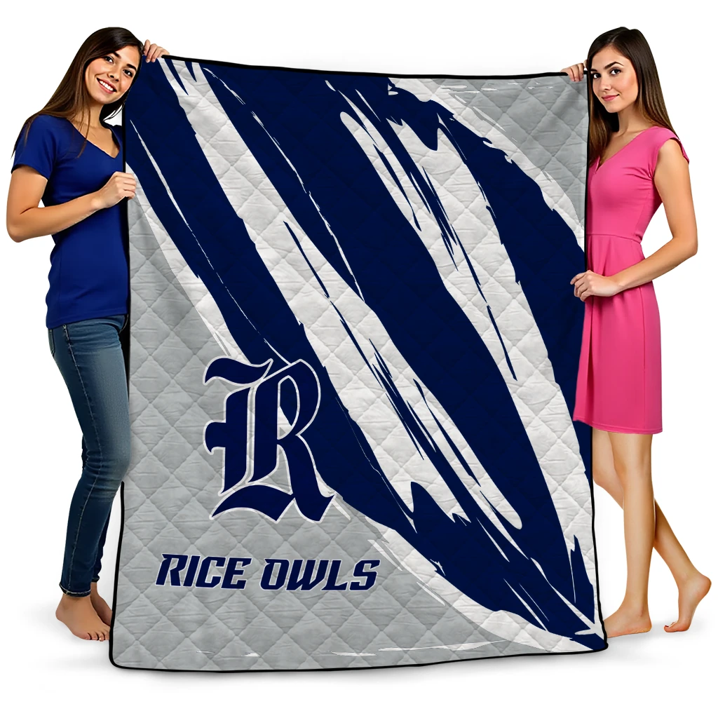 Wrap yourself in warmth and pride with the Rice Owls Stroke Art Navy Blue White Quilt Blanket from the Rice Owls Blankets collection at Yes That Blanket. Made from 100% premium quilting-weight polyester blended with a touch of microfiber, this quilt offers a smooth, soft finish you’ll love. Choose between two quilting styles—Stipple or Diagonal—and enjoy the comfort of a cotton-filled layer inside that adds extra coziness for every season. The border is available in classic black or white, giving your design a clean, timeless edge.
