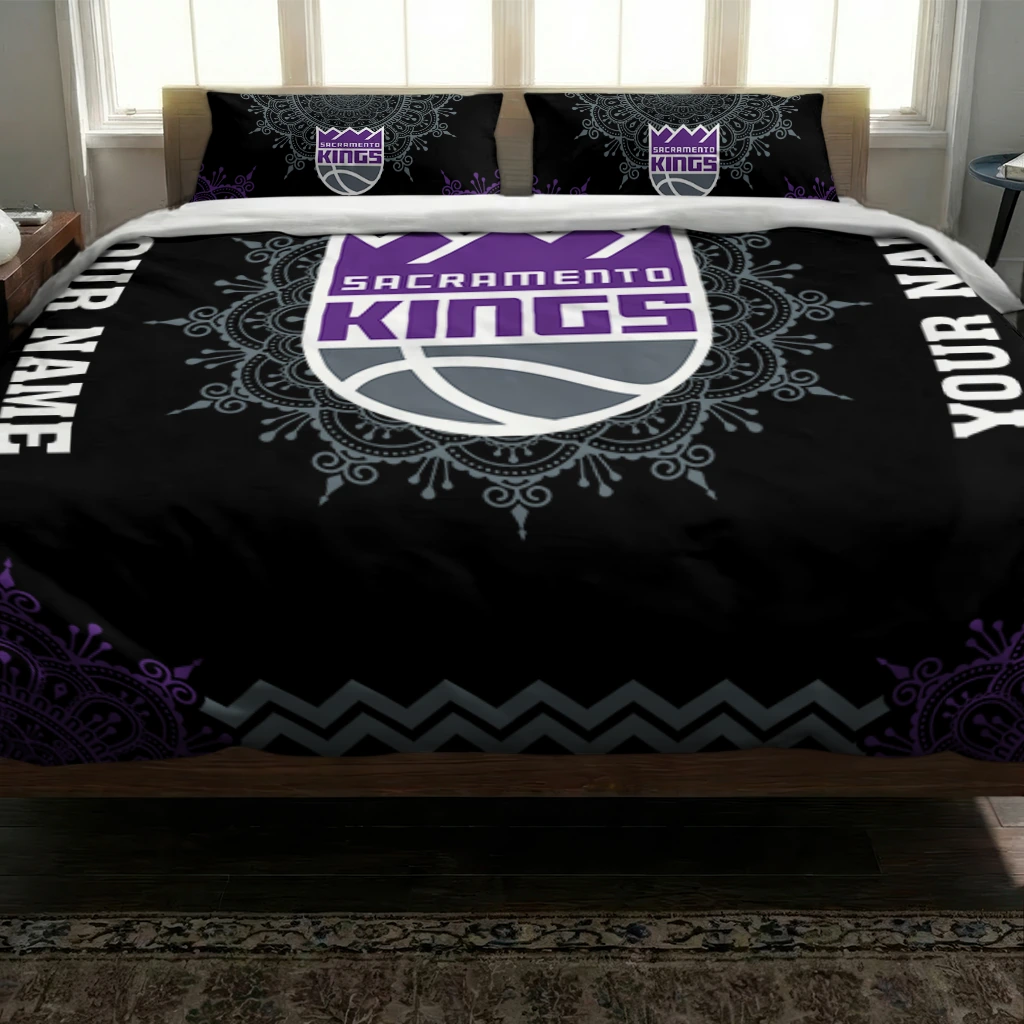 Sacramento Kings Bedding Set – Personalized Mandala Lacework Black Purple