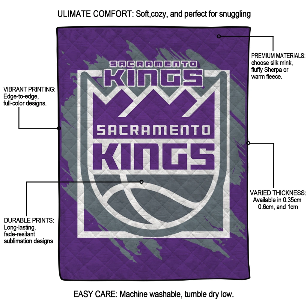 Wrap yourself in warmth and pride with the Sacramento Kings Block Border Purple Quilt Blanket from the Sacramento Kings Blankets collection at Yes That Blanket. Made from 100% premium quilting-weight polyester blended with a touch of microfiber, this quilt offers a smooth, soft finish you’ll love. Choose between two quilting styles—Stipple or Diagonal—and enjoy the comfort of a cotton-filled layer inside that adds extra coziness for every season. The border is available in classic black or white, giving your design a clean, timeless edge.