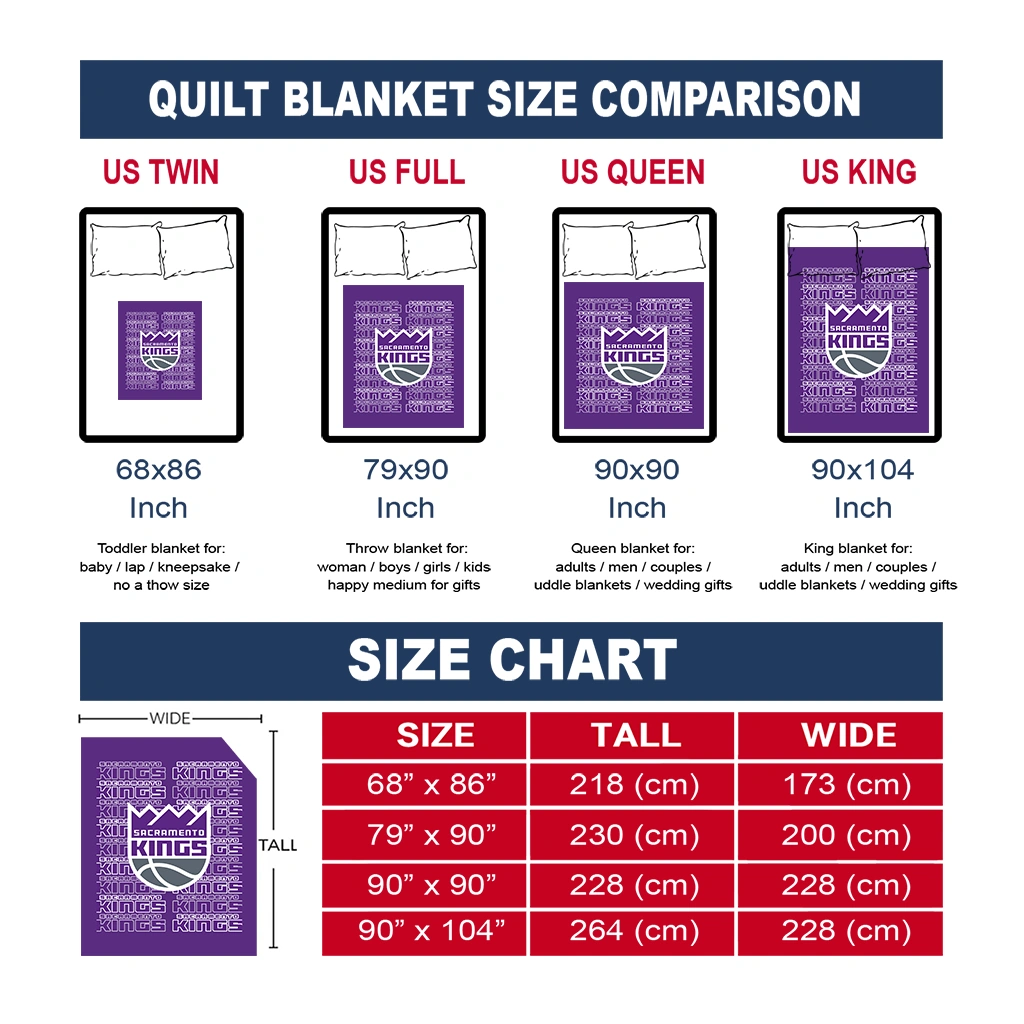 Wrap yourself in warmth and pride with the Sacramento Kings Bold Red Purple Quilt Blanket from the Sacramento Kings Blankets collection at Yes That Blanket. Made from 100% premium quilting-weight polyester blended with a touch of microfiber, this quilt offers a smooth, soft finish you’ll love. Choose between two quilting styles—Stipple or Diagonal—and enjoy the comfort of a cotton-filled layer inside that adds extra coziness for every season. The border is available in classic black or white, giving your design a clean, timeless edge.