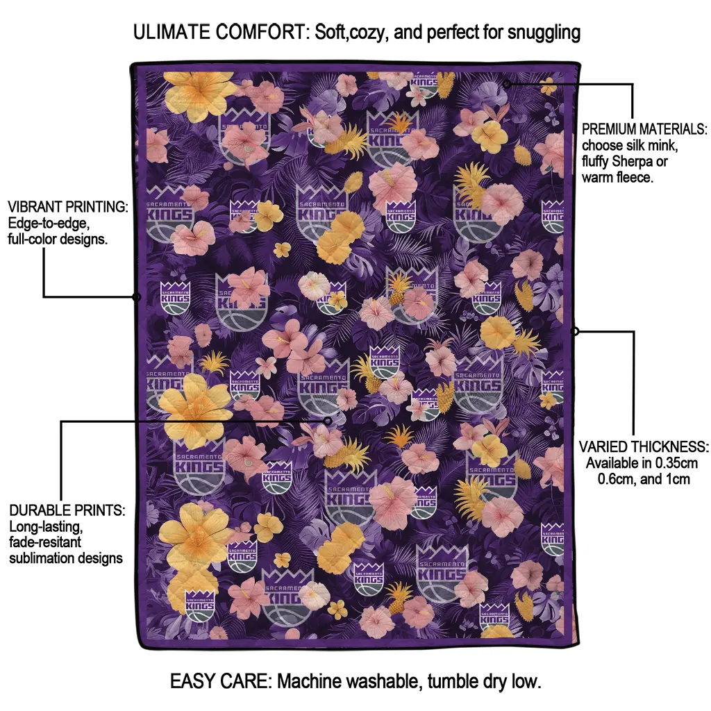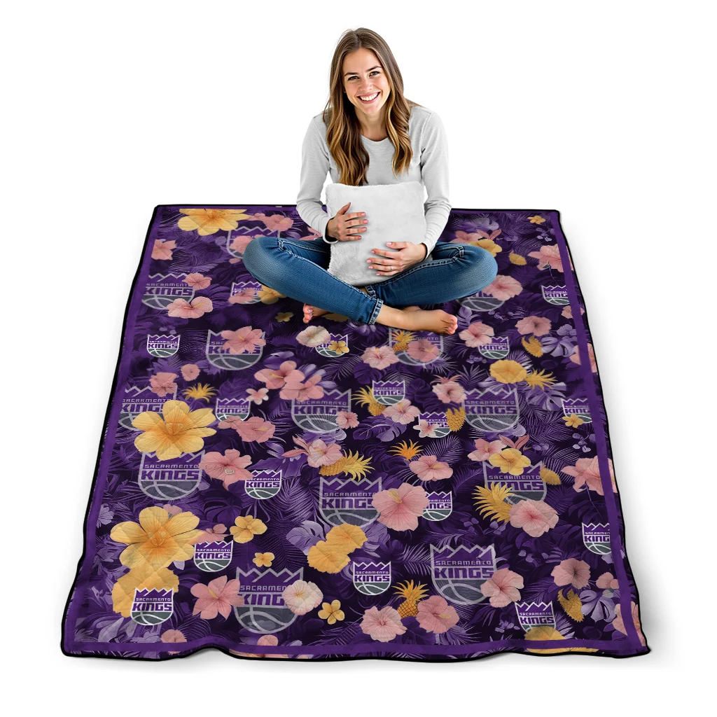 Wrap yourself in warmth and pride with the Sacramento Kings Hibiscus Foliage Purple Quilt Blanket from the Sacramento Kings Blankets collection at Yes That Blanket. Made from 100% premium quilting-weight polyester blended with a touch of microfiber, this quilt offers a smooth, soft finish you’ll love. Choose between two quilting styles—Stipple or Diagonal—and enjoy the comfort of a cotton-filled layer inside that adds extra coziness for every season. The border is available in classic black or white, giving your design a clean, timeless edge.