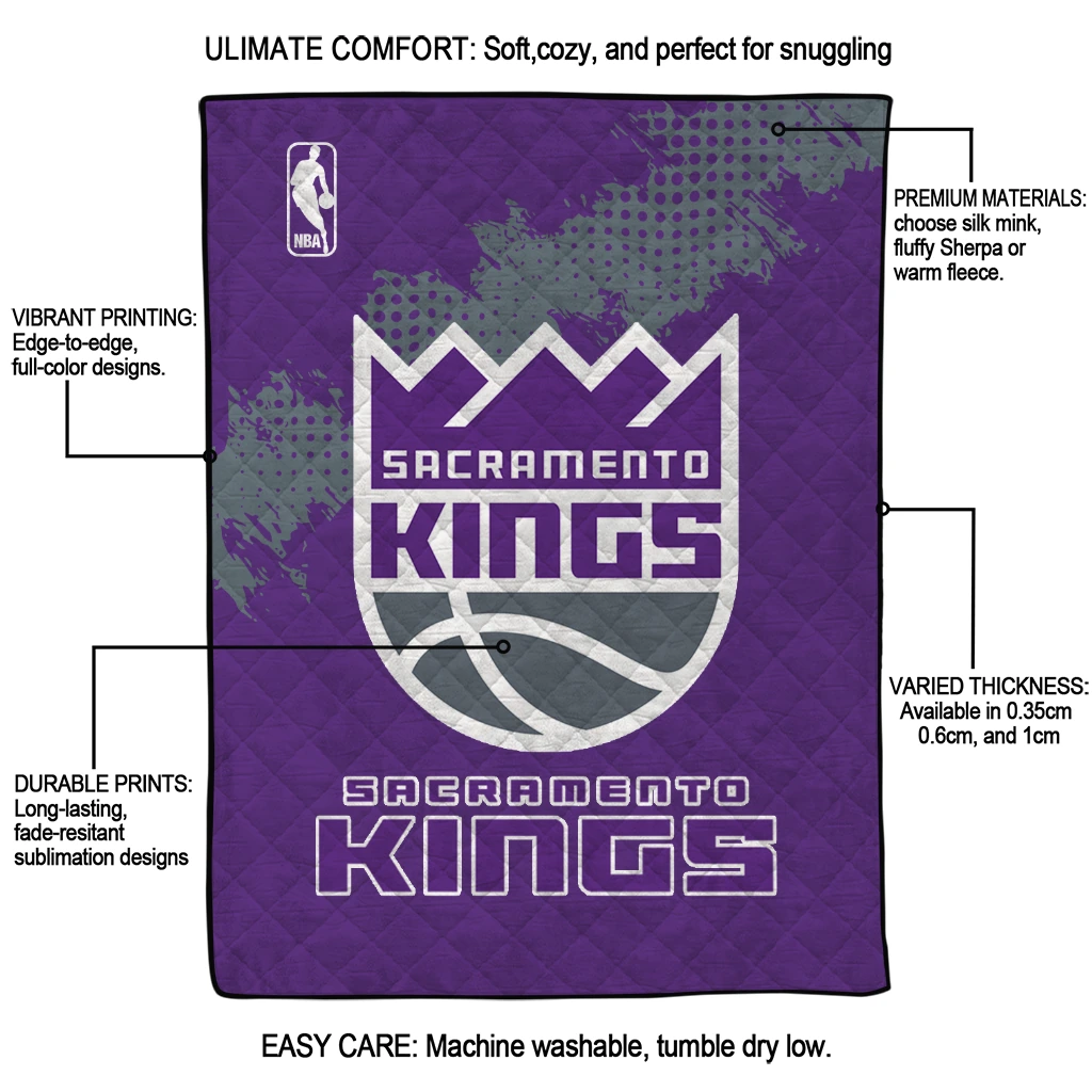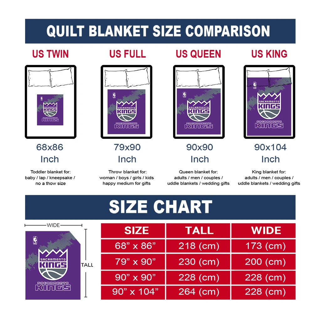 Wrap yourself in warmth and pride with the Sacramento Kings NBA Grunge Purple Quilt Blanket from the Sacramento Kings Blankets collection at Yes That Blanket. Made from 100% premium quilting-weight polyester blended with a touch of microfiber, this quilt offers a smooth, soft finish you’ll love. Choose between two quilting styles—Stipple or Diagonal—and enjoy the comfort of a cotton-filled layer inside that adds extra coziness for every season. The border is available in classic black or white, giving your design a clean, timeless edge.