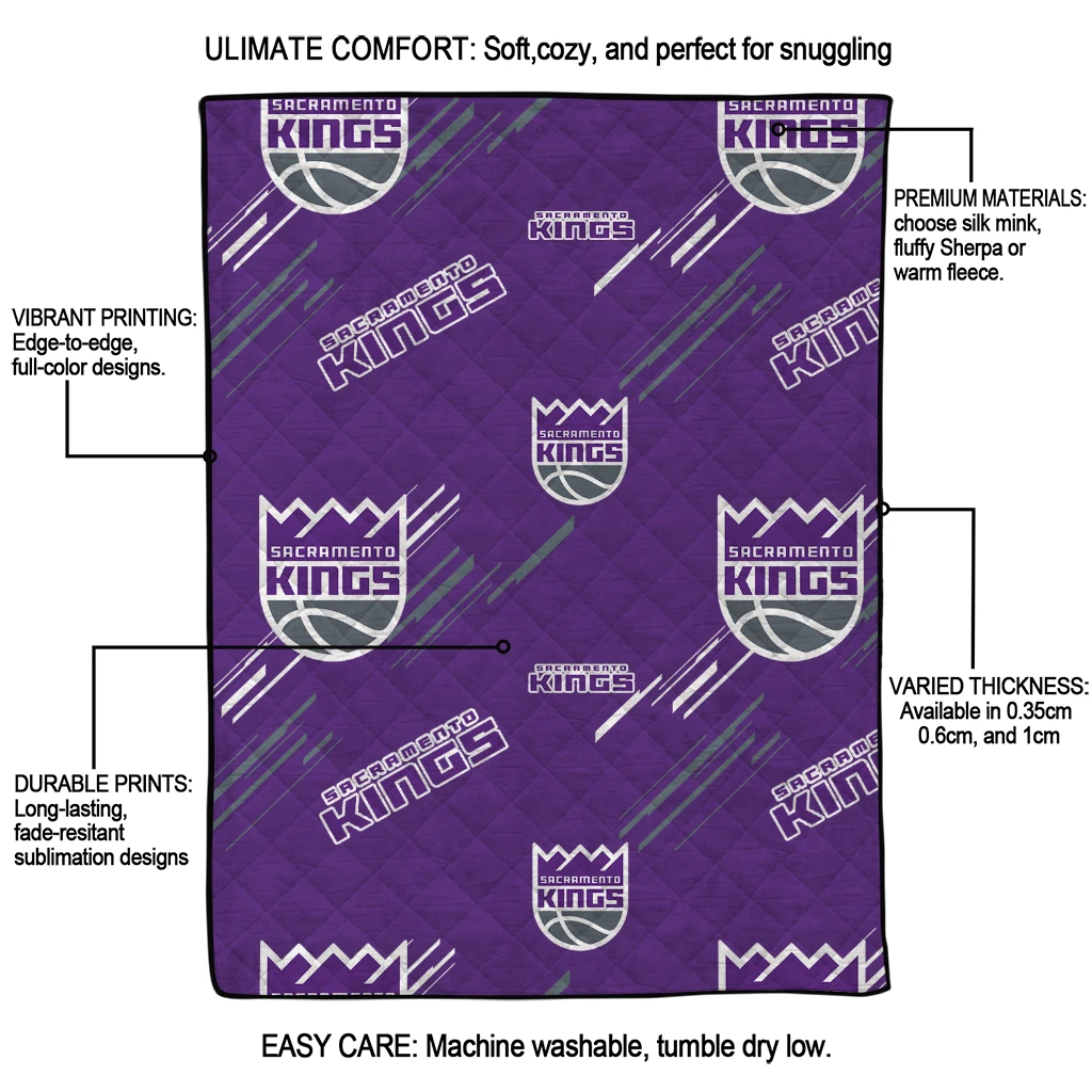 Wrap yourself in warmth and pride with the Sacramento Kings Sketch Lines Purple Quilt Blanket from the Sacramento Kings Blankets collection at Yes That Blanket. Made from 100% premium quilting-weight polyester blended with a touch of microfiber, this quilt offers a smooth, soft finish you’ll love. Choose between two quilting styles—Stipple or Diagonal—and enjoy the comfort of a cotton-filled layer inside that adds extra coziness for every season. The border is available in classic black or white, giving your design a clean, timeless edge.