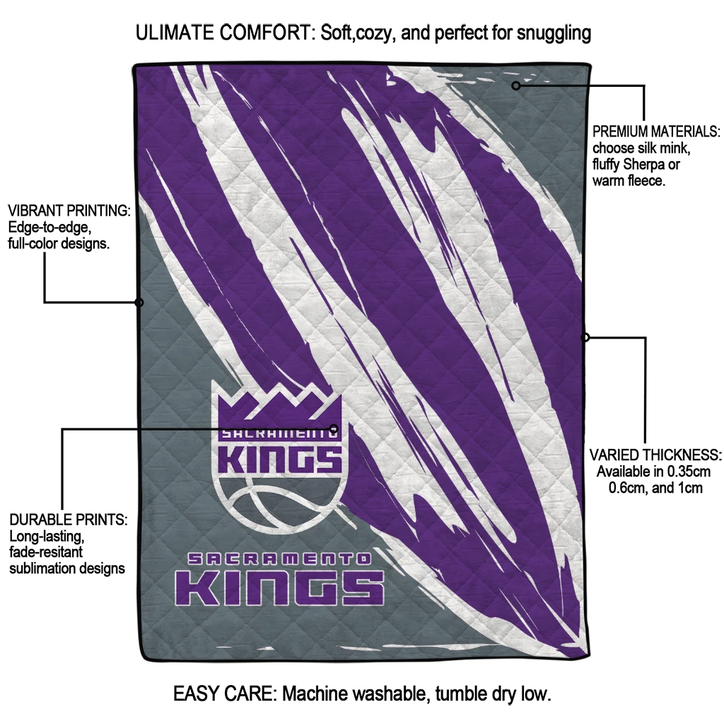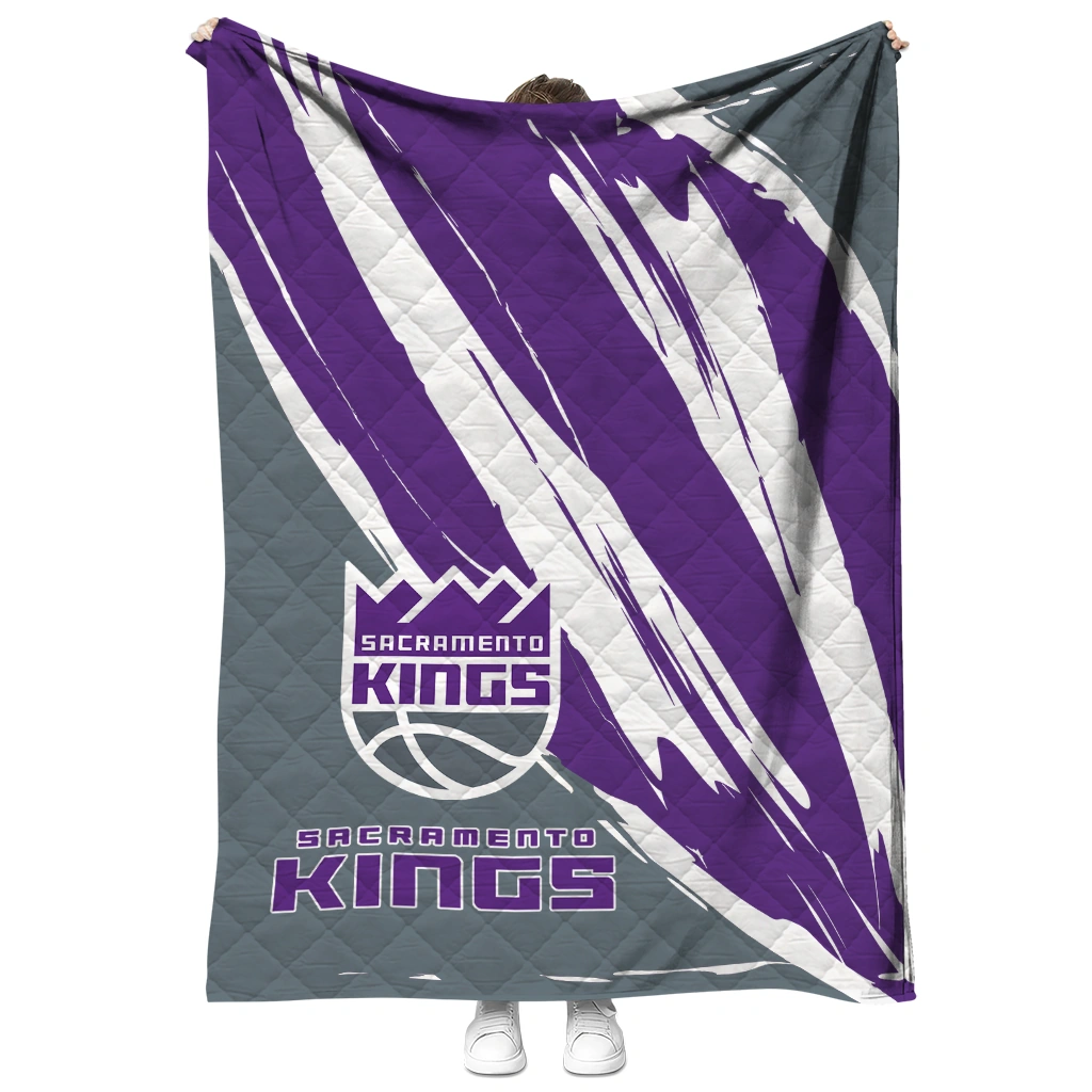 Wrap yourself in warmth and pride with the Sacramento Kings Stroke Art Purple White Quilt Blanket from the Sacramento Kings Blankets collection at Yes That Blanket. Made from 100% premium quilting-weight polyester blended with a touch of microfiber, this quilt offers a smooth, soft finish you’ll love. Choose between two quilting styles—Stipple or Diagonal—and enjoy the comfort of a cotton-filled layer inside that adds extra coziness for every season. The border is available in classic black or white, giving your design a clean, timeless edge.