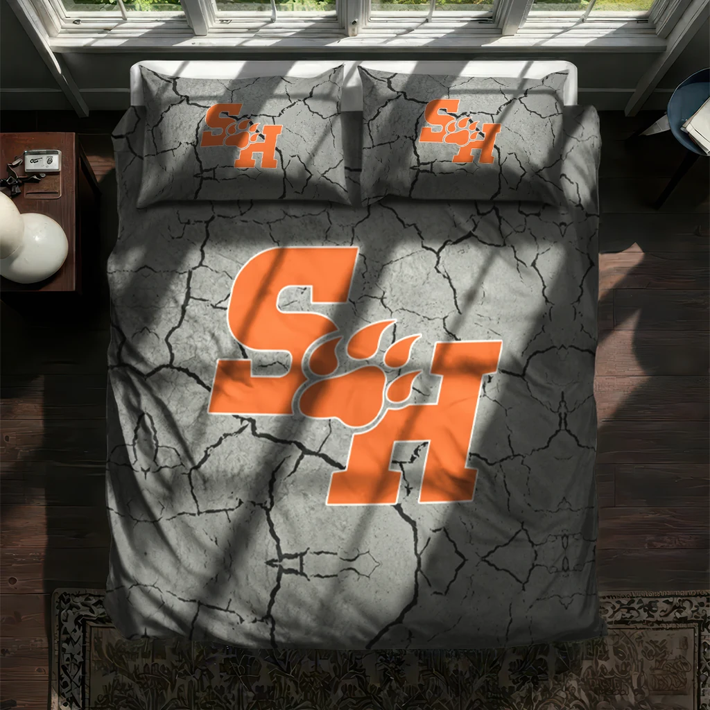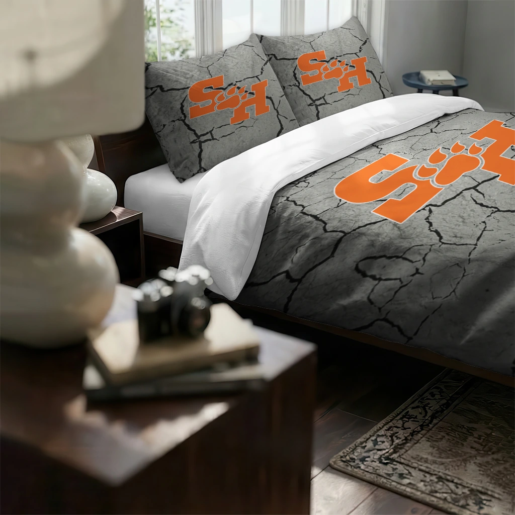 Sam Houston Bearkats Bedding Set – Cracked Texture Gray Orange