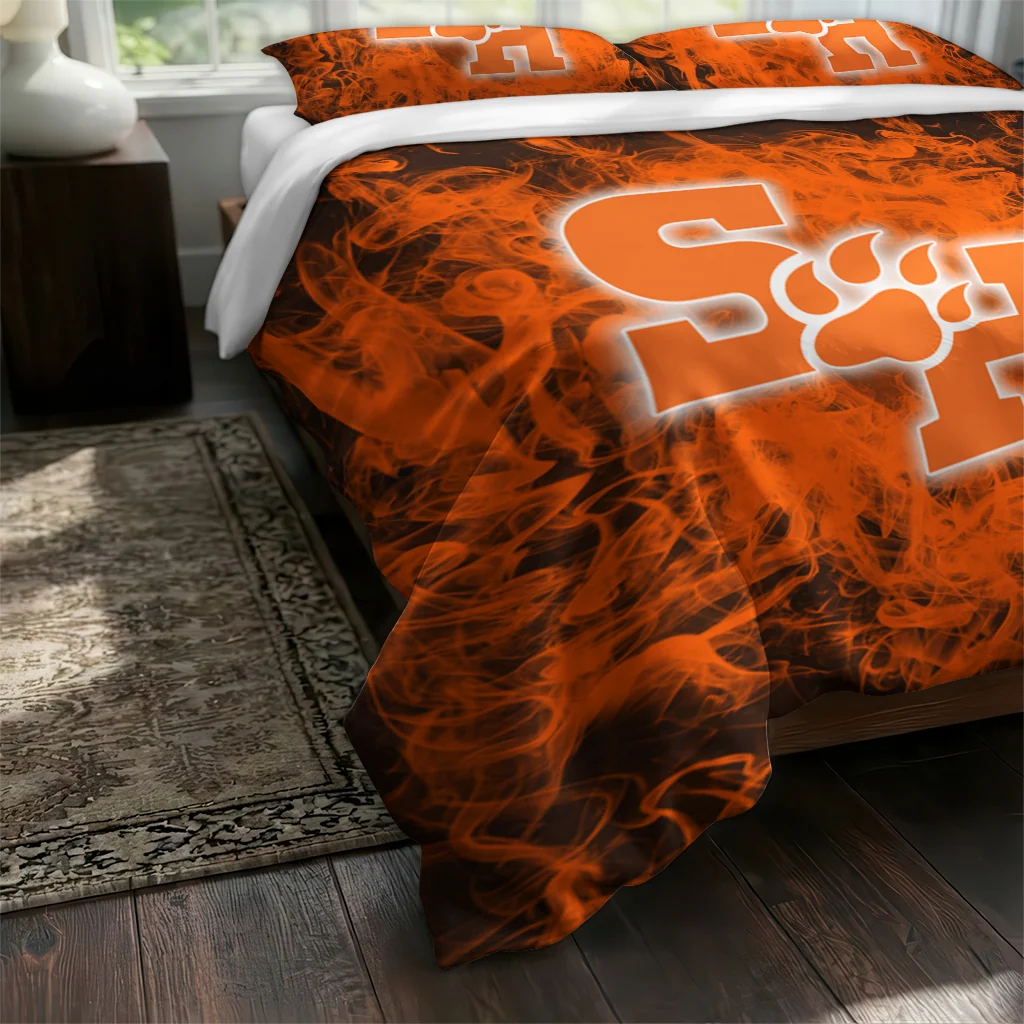 The Sam Houston Bearkats Bedding Set – Red Mist Orange Black makes your room feel complete, warm, and overflowing with team pride. Designed for true fans, this bedding set from the Sam Houston Bearkats Bedding Sets collection at Yes That Blanket turns your sanctuary into a cozy retreat where sport style meets ultimate relaxation. Experience the perfect blend of comfort and passion every night with a finish so soft, you’ll never want to leave.