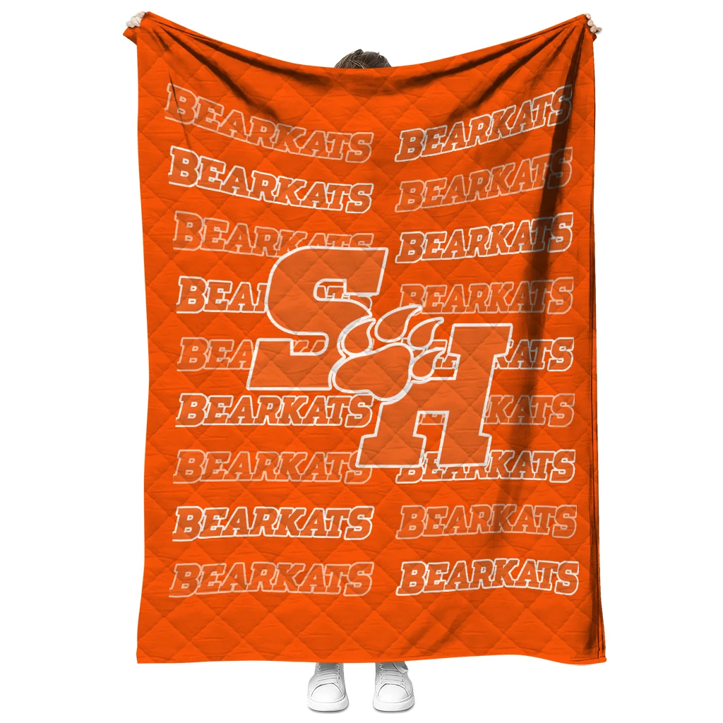 Wrap yourself in warmth and pride with the Sam Houston Bearkats Bold Red Orange Quilt Blanket from the Sam Houston Bearkats Blankets collection at Yes That Blanket. Made from 100% premium quilting-weight polyester blended with a touch of microfiber, this quilt offers a smooth, soft finish you’ll love. Choose between two quilting styles—Stipple or Diagonal—and enjoy the comfort of a cotton-filled layer inside that adds extra coziness for every season. The border is available in classic black or white, giving your design a clean, timeless edge.