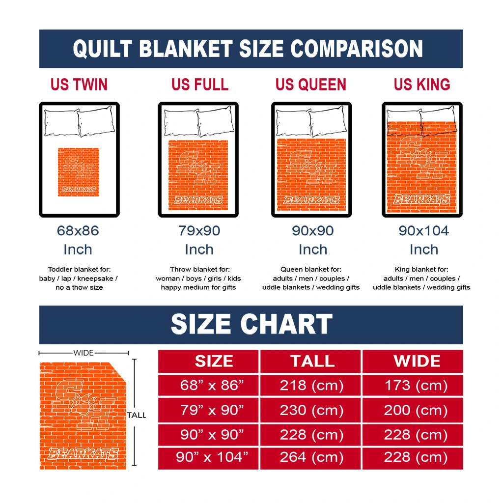 Wrap yourself in warmth and pride with the Sam Houston Bearkats Brick Grid Orange Quilt Blanket from the Sam Houston Bearkats Blankets collection at Yes That Blanket. Made from 100% premium quilting-weight polyester blended with a touch of microfiber, this quilt offers a smooth, soft finish you’ll love. Choose between two quilting styles—Stipple or Diagonal—and enjoy the comfort of a cotton-filled layer inside that adds extra coziness for every season. The border is available in classic black or white, giving your design a clean, timeless edge.