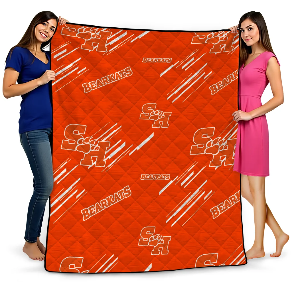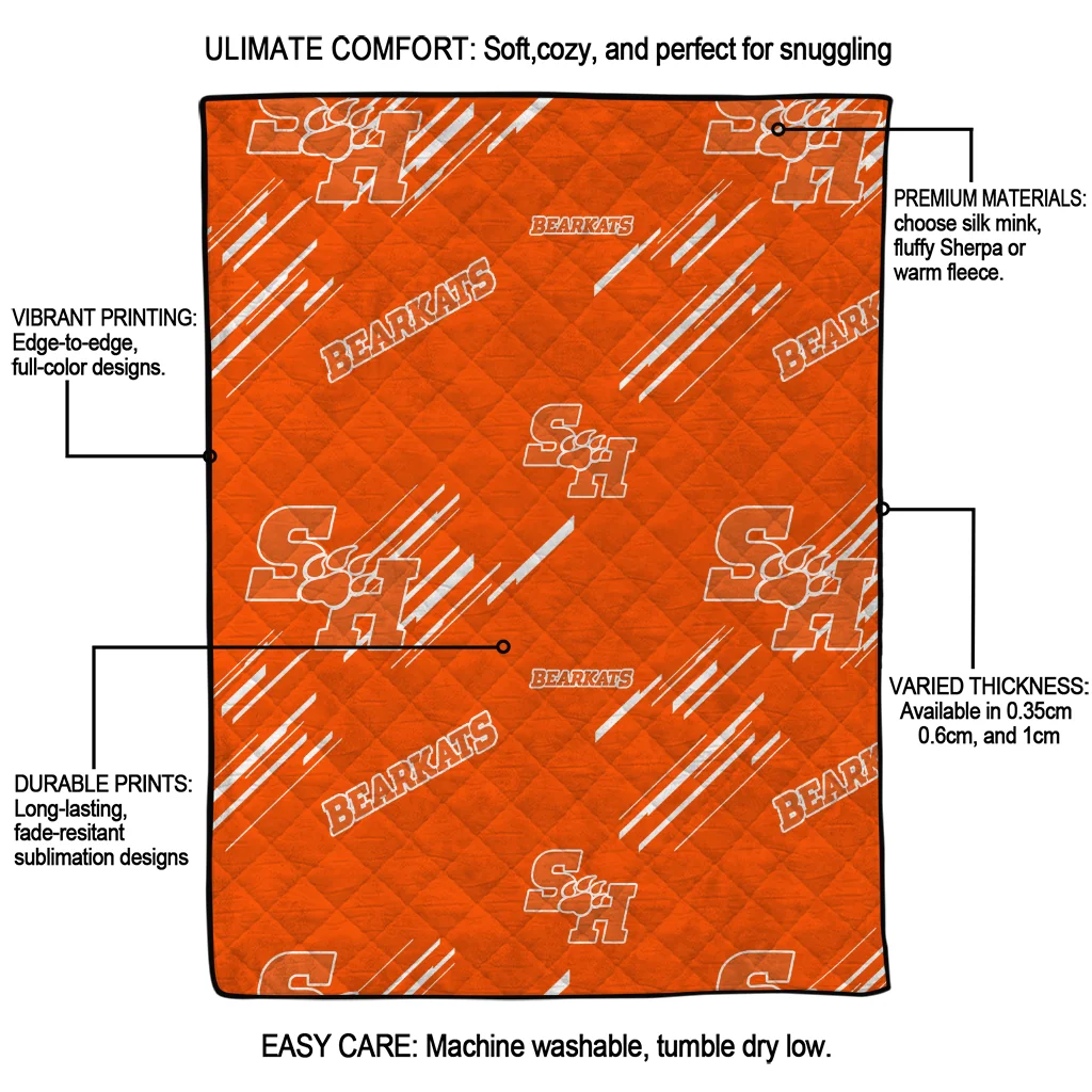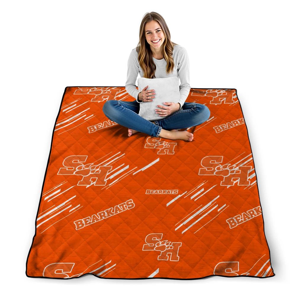 Wrap yourself in warmth and pride with the Sam Houston Bearkats Sketch Lines Orange Quilt Blanket from the Sam Houston Bearkats Blankets collection at Yes That Blanket. Made from 100% premium quilting-weight polyester blended with a touch of microfiber, this quilt offers a smooth, soft finish you’ll love. Choose between two quilting styles—Stipple or Diagonal—and enjoy the comfort of a cotton-filled layer inside that adds extra coziness for every season. The border is available in classic black or white, giving your design a clean, timeless edge.