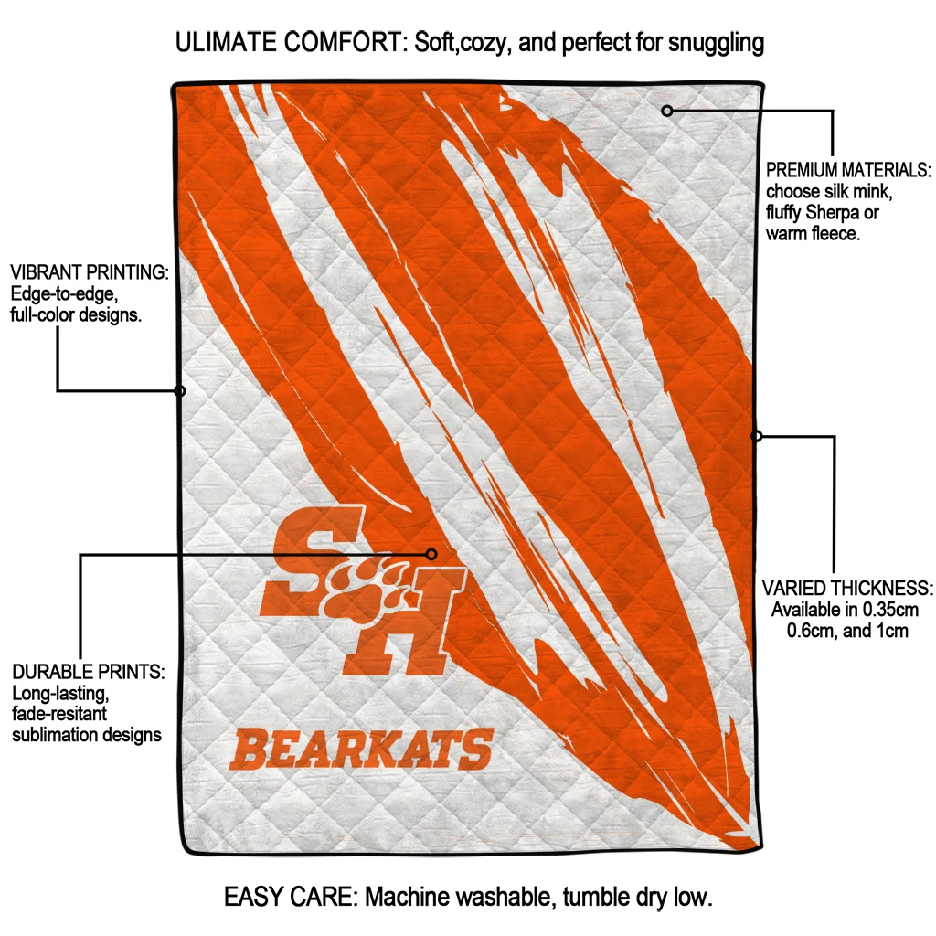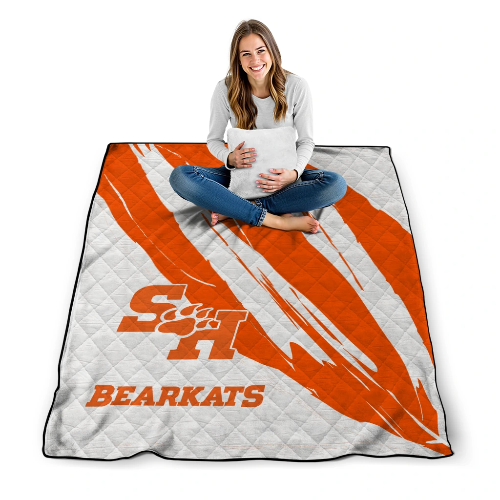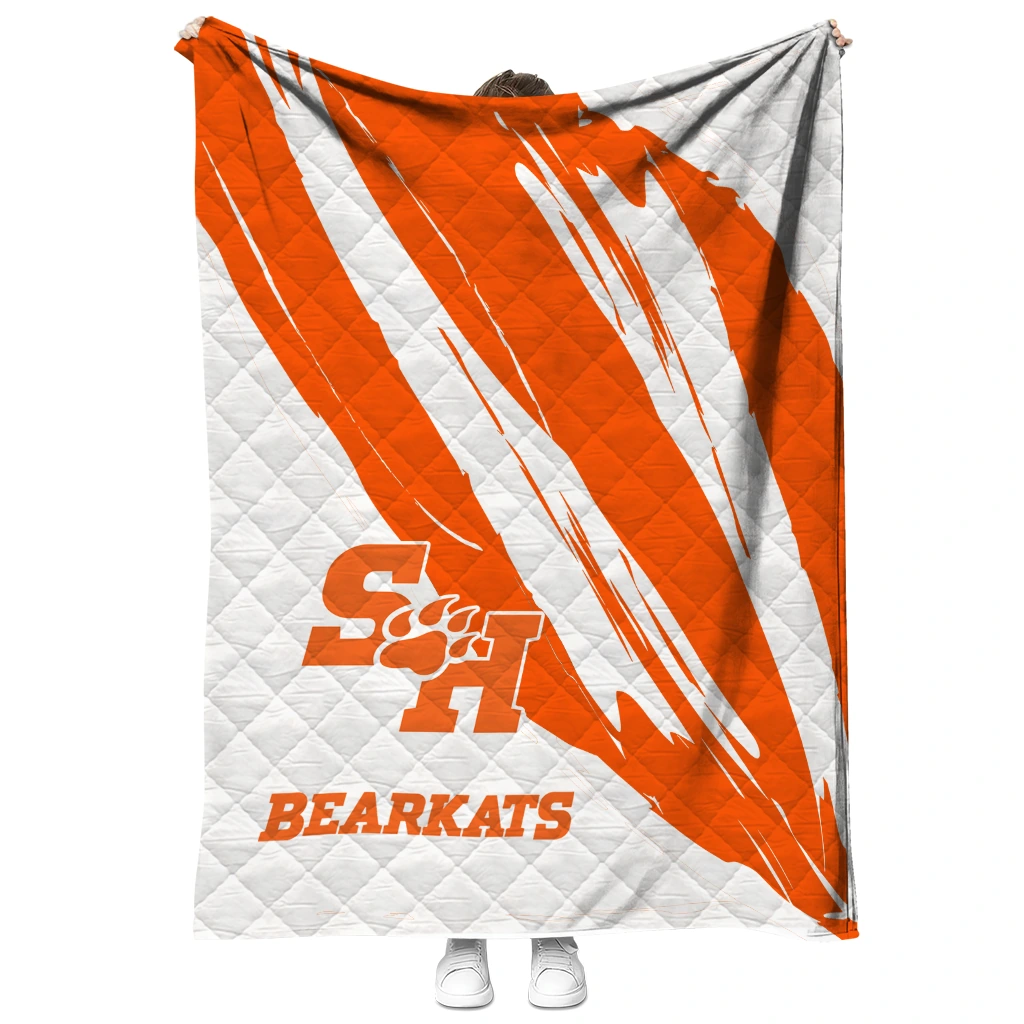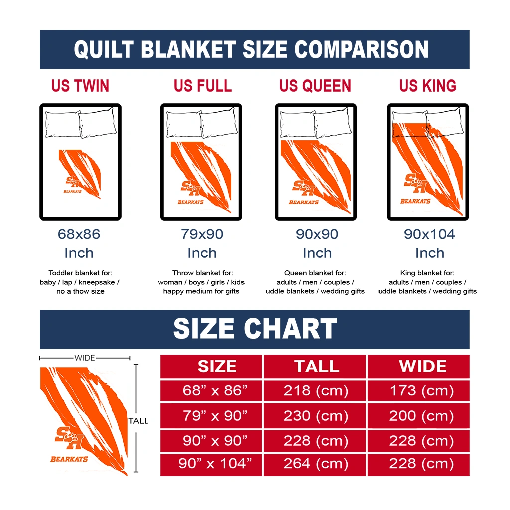 Wrap yourself in warmth and pride with the Sam Houston Bearkats Stroke Art Orange White Quilt Blanket from the Sam Houston Bearkats Blankets collection at Yes That Blanket. Made from 100% premium quilting-weight polyester blended with a touch of microfiber, this quilt offers a smooth, soft finish you’ll love. Choose between two quilting styles—Stipple or Diagonal—and enjoy the comfort of a cotton-filled layer inside that adds extra coziness for every season. The border is available in classic black or white, giving your design a clean, timeless edge.