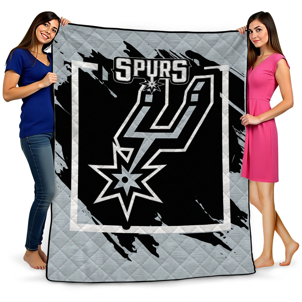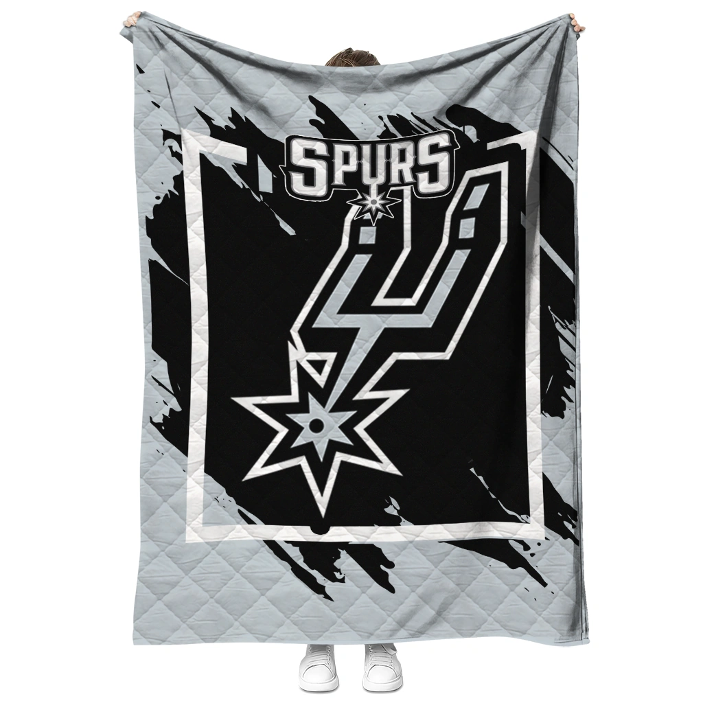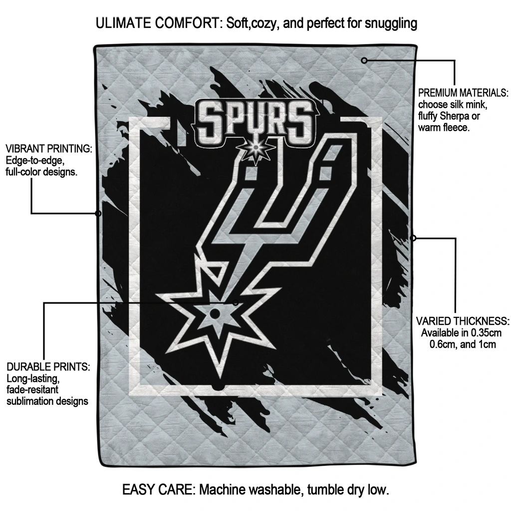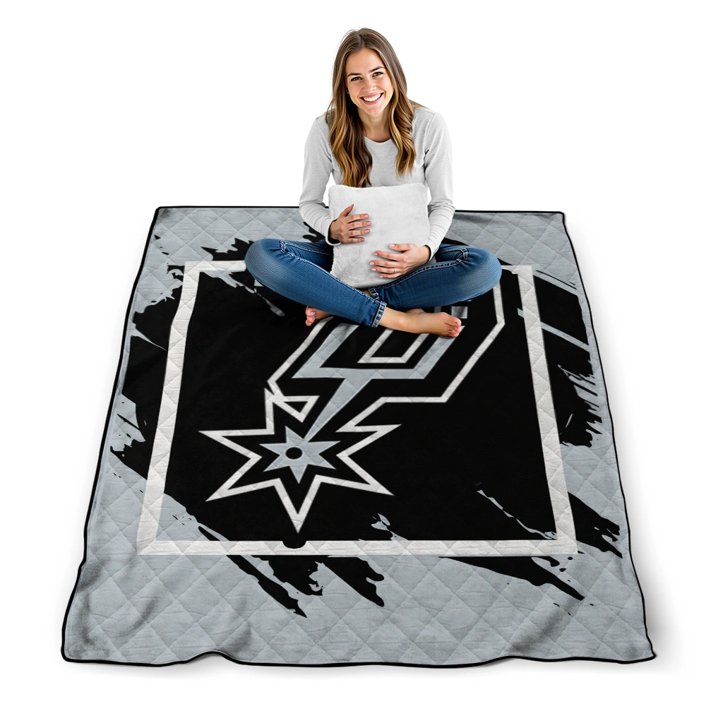 San Antonio Spurs Block Border Silver Quilt Blanket