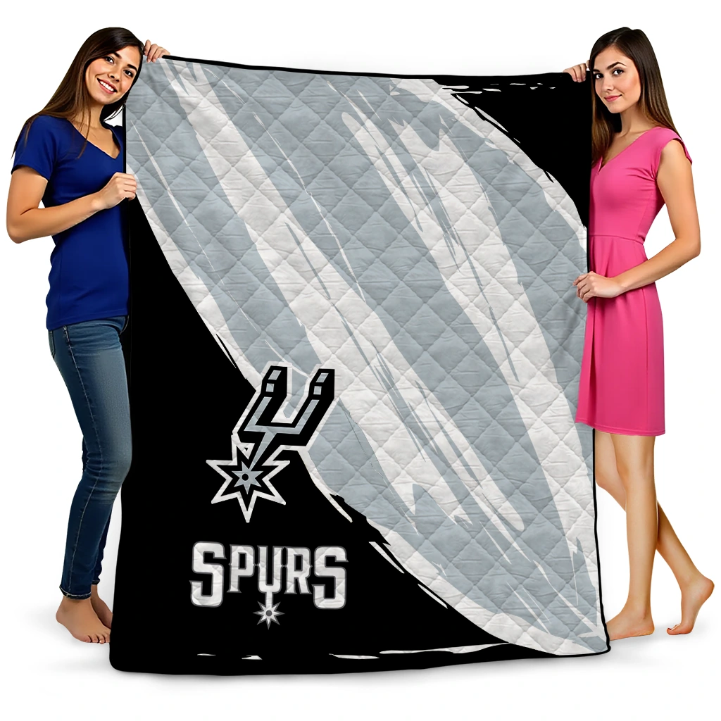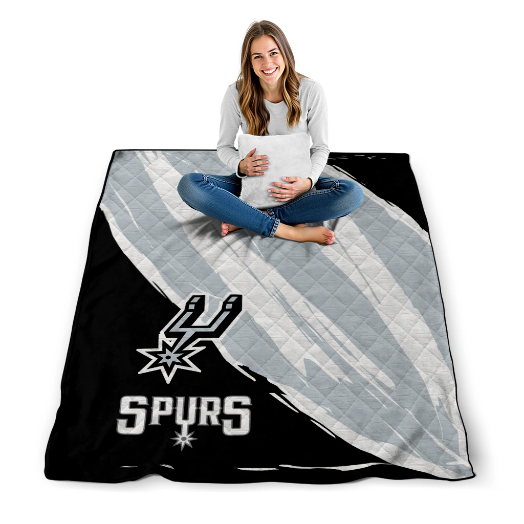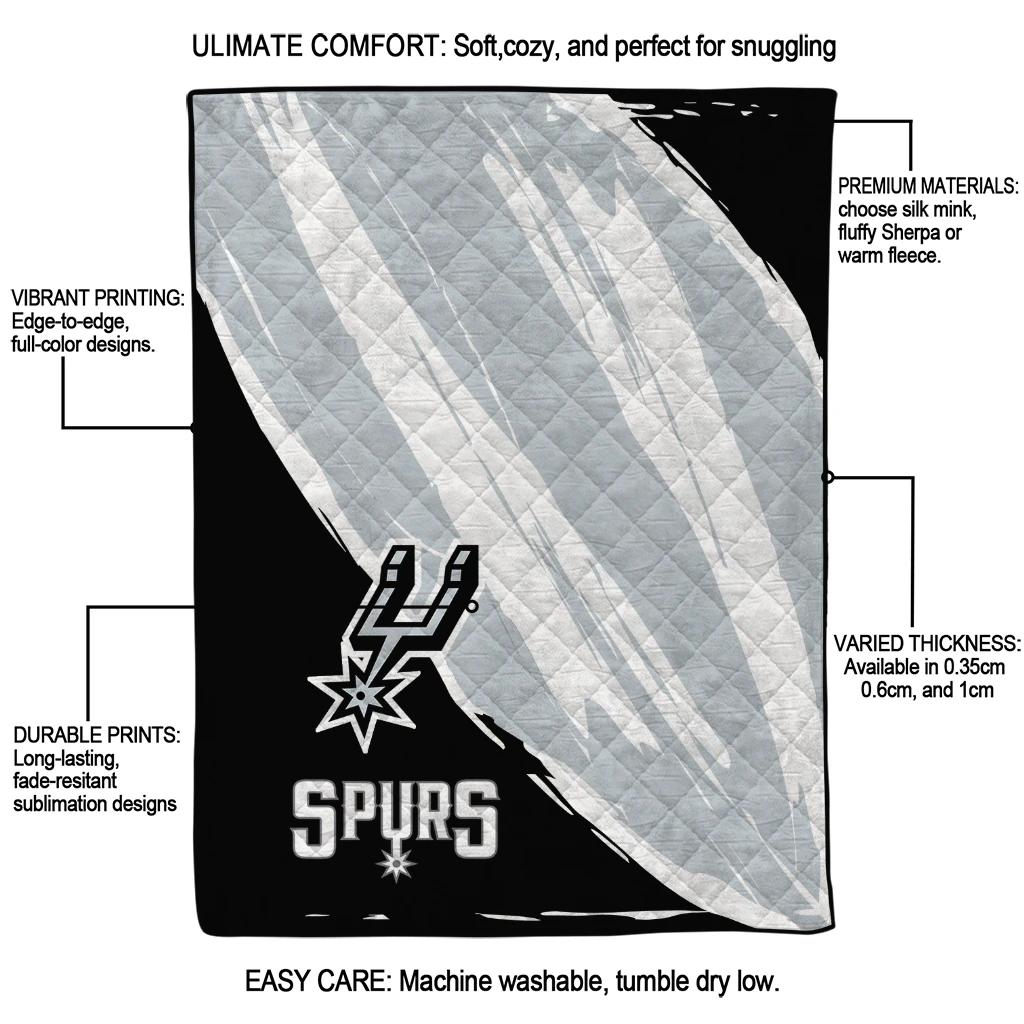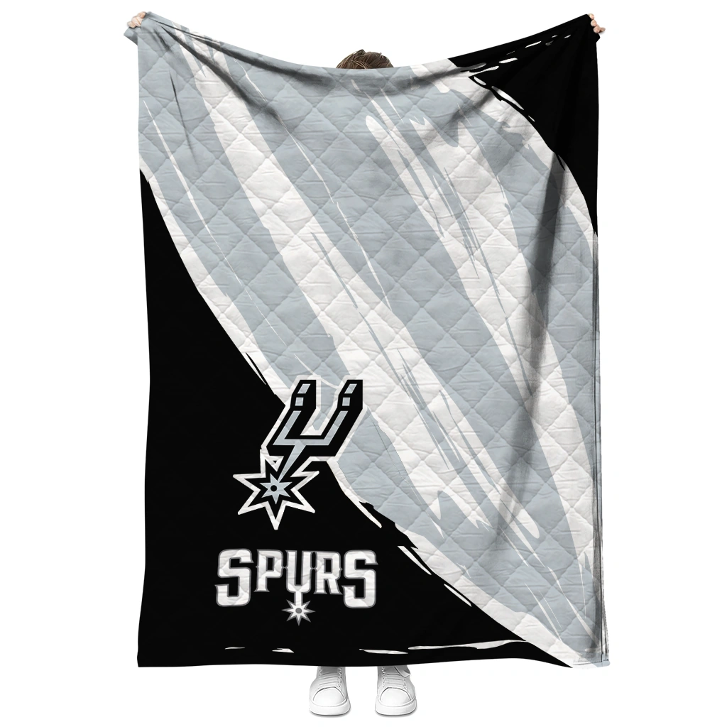 San Antonio Spurs Stroke Art Silver White Quilt Blanket