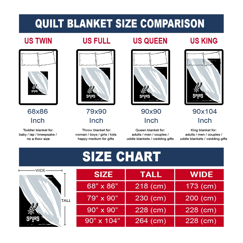 The San Antonio Spurs Stroke Art Silver White Quilt Blanket is more than a blanket—it’s everyday comfort, thoughtfully made. Crafted from premium quilting fabric with a soft microfiber touch, it offers a smooth hand-feel and lasting coziness. Layered quilting with a cotton-filled core provides adaptable warmth across seasons while maintaining a clean, tailored look on your bed or sofa.