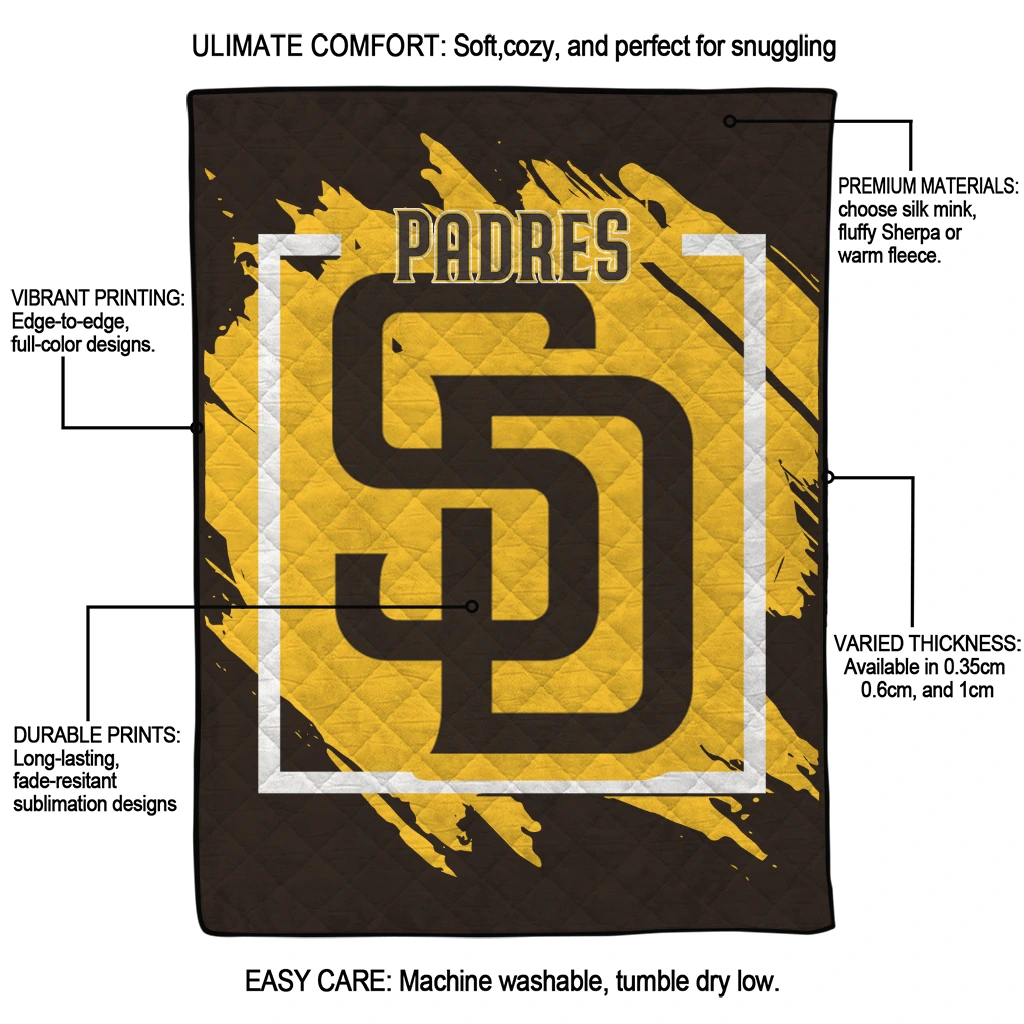 Wrap yourself in warmth and pride with the San Diego Padres Block Border Brown Quilt Blanket from the San Diego Padres Blankets collection at Yes That Blanket. Made from 100% premium quilting-weight polyester blended with a touch of microfiber, this quilt offers a smooth, soft finish you’ll love. Choose between two quilting styles—Stipple or Diagonal—and enjoy the comfort of a cotton-filled layer inside that adds extra coziness for every season. The border is available in classic black or white, giving your design a clean, timeless edge.