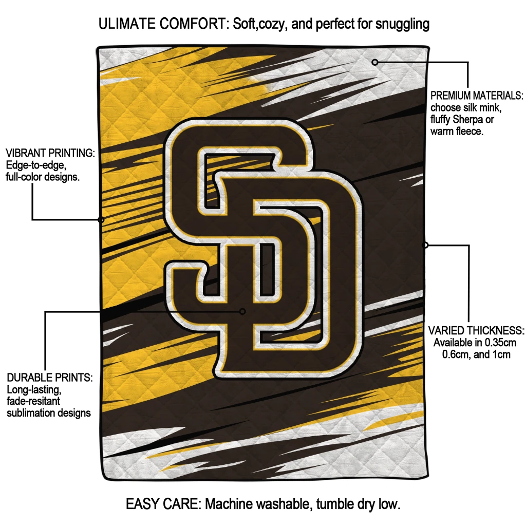 Wrap yourself in warmth and pride with the San Diego Padres Wild Lines Brown White Quilt Blanket from the San Diego Padres Blankets collection at Yes That Blanket. Made from 100% premium quilting-weight polyester blended with a touch of microfiber, this quilt offers a smooth, soft finish you’ll love. Choose between two quilting styles—Stipple or Diagonal—and enjoy the comfort of a cotton-filled layer inside that adds extra coziness for every season. The border is available in classic black or white, giving your design a clean, timeless edge.
