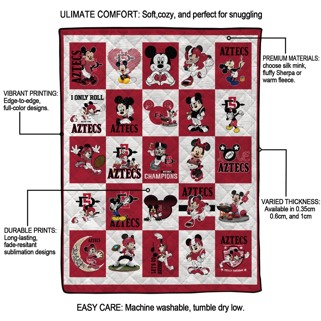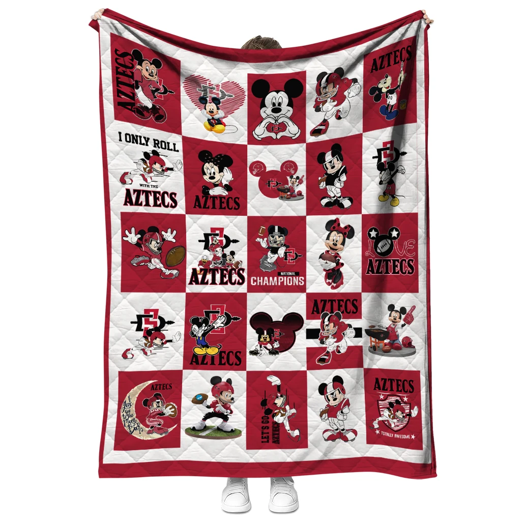 Wrap yourself in warmth and pride with the San Diego State Aztecs Mickey Mouse Motif Red White Quilt Blanket from the San Diego State Aztecs Blankets collection at Yes That Blanket. Made from 100% premium quilting-weight polyester blended with a touch of microfiber, this quilt offers a smooth, soft finish you’ll love. Choose between two quilting styles—Stipple or Diagonal—and enjoy the comfort of a cotton-filled layer inside that adds extra coziness for every season. The border is available in classic black or white, giving your design a clean, timeless edge.