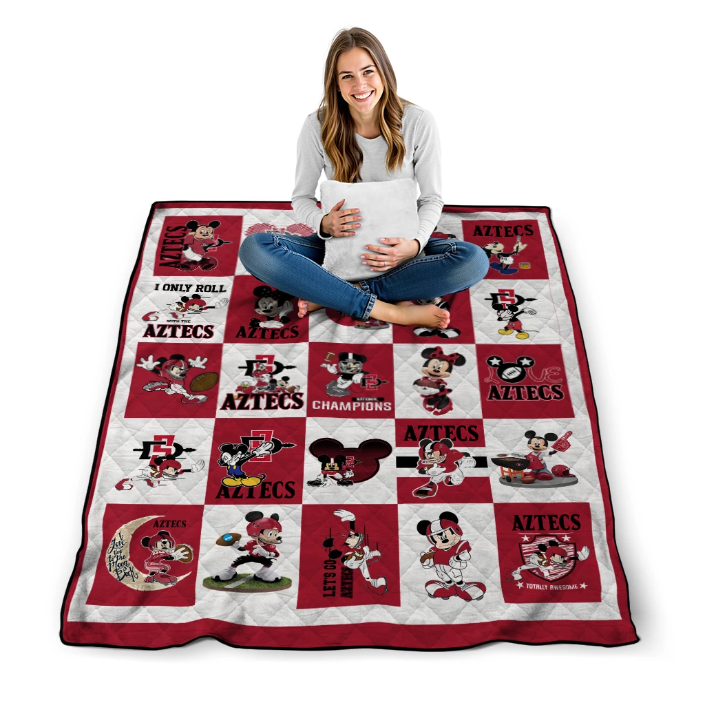 The San Diego State Aztecs Mickey Mouse Motif Red White Quilt Blanket is more than a blanket—it’s everyday comfort, thoughtfully made. Crafted from premium quilting fabric with a soft microfiber touch, it offers a smooth hand-feel and lasting coziness. Layered quilting with a cotton-filled core provides adaptable warmth across seasons while maintaining a clean, tailored look on your bed or sofa.