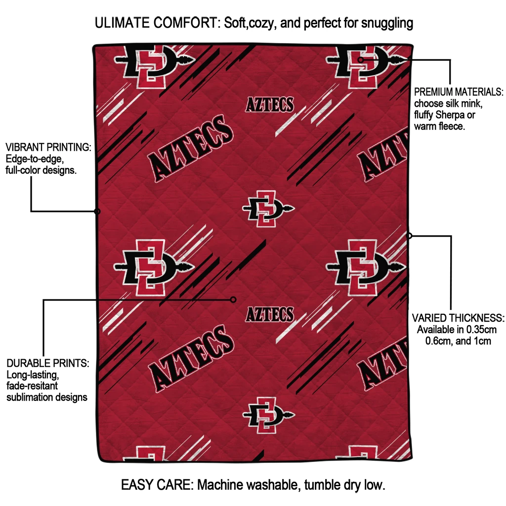Wrap yourself in warmth and pride with the San Diego State Aztecs Sketch Lines Red Quilt Blanket from the San Diego State Aztecs Blankets collection at Yes That Blanket. Made from 100% premium quilting-weight polyester blended with a touch of microfiber, this quilt offers a smooth, soft finish you’ll love. Choose between two quilting styles—Stipple or Diagonal—and enjoy the comfort of a cotton-filled layer inside that adds extra coziness for every season. The border is available in classic black or white, giving your design a clean, timeless edge.