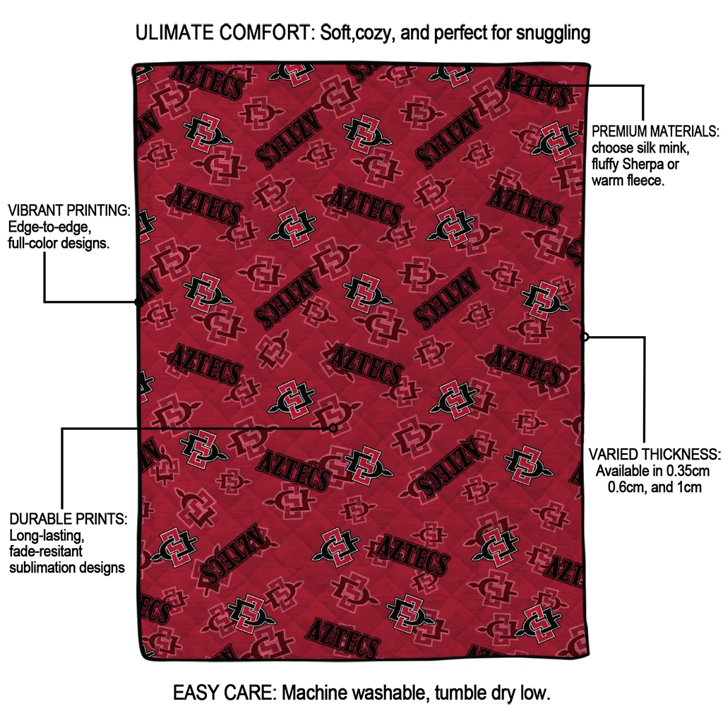 Wrap yourself in warmth and pride with the San Diego State Aztecs Solid Classic Red Quilt Blanket from the San Diego State Aztecs Blankets collection at Yes That Blanket. Made from 100% premium quilting-weight polyester blended with a touch of microfiber, this quilt offers a smooth, soft finish you’ll love. Choose between two quilting styles—Stipple or Diagonal—and enjoy the comfort of a cotton-filled layer inside that adds extra coziness for every season. The border is available in classic black or white, giving your design a clean, timeless edge.
