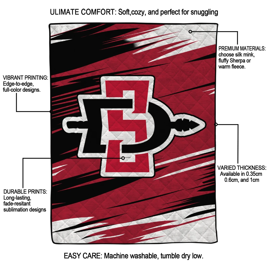 Wrap yourself in warmth and pride with the San Diego State Aztecs Wild Lines Red White Quilt Blanket from the San Diego State Aztecs Blankets collection at Yes That Blanket. Made from 100% premium quilting-weight polyester blended with a touch of microfiber, this quilt offers a smooth, soft finish you’ll love. Choose between two quilting styles—Stipple or Diagonal—and enjoy the comfort of a cotton-filled layer inside that adds extra coziness for every season. The border is available in classic black or white, giving your design a clean, timeless edge.