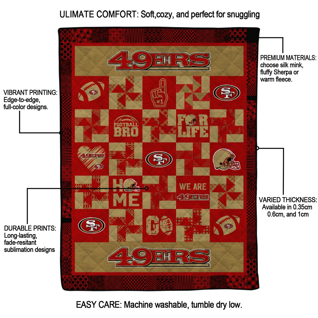 The San Francisco 49ers Helmet Heart Red Quilt Blanket is more than a blanket—it’s everyday comfort, thoughtfully made. Crafted from premium quilting fabric with a soft microfiber touch, it offers a smooth hand-feel and lasting coziness. Layered quilting with a cotton-filled core provides adaptable warmth across seasons while maintaining a clean, tailored look on your bed or sofa.