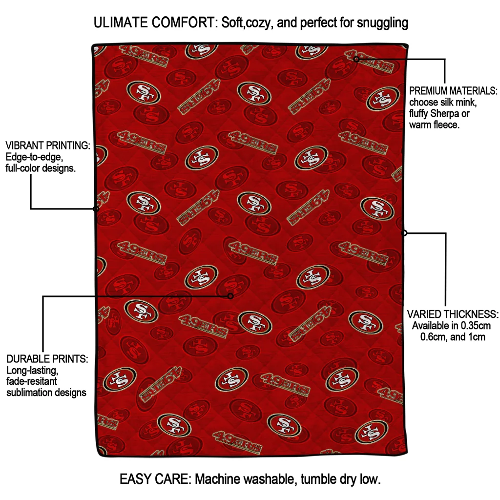 The San Francisco 49ers Solid Classic Red Quilt Blanket is more than a blanket—it’s everyday comfort, thoughtfully made. Crafted from premium quilting fabric with a soft microfiber touch, it offers a smooth hand-feel and lasting coziness. Layered quilting with a cotton-filled core provides adaptable warmth across seasons while maintaining a clean, tailored look on your bed or sofa.