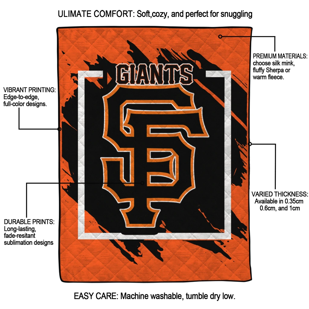 Wrap yourself in warmth and pride with the San Francisco Giants Block Border Orange Quilt Blanket from the San Francisco Giants Blankets collection at Yes That Blanket. Made from 100% premium quilting-weight polyester blended with a touch of microfiber, this quilt offers a smooth, soft finish you’ll love. Choose between two quilting styles—Stipple or Diagonal—and enjoy the comfort of a cotton-filled layer inside that adds extra coziness for every season. The border is available in classic black or white, giving your design a clean, timeless edge.