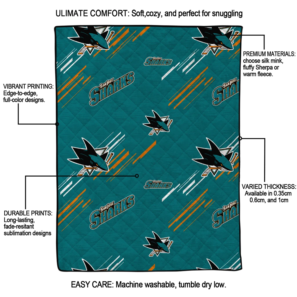 Wrap yourself in warmth and pride with the San Jose Sharks Sketch Lines Teal Quilt Blanket from the San Jose Sharks Blankets collection at Yes That Blanket. Made from 100% premium quilting-weight polyester blended with a touch of microfiber, this quilt offers a smooth, soft finish you’ll love. Choose between two quilting styles—Stipple or Diagonal—and enjoy the comfort of a cotton-filled layer inside that adds extra coziness for every season. The border is available in classic black or white, giving your design a clean, timeless edge.