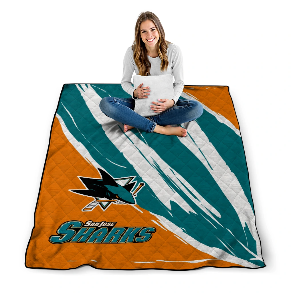 The San Jose Sharks Stroke Art Teal White Quilt Blanket is more than a blanket—it’s everyday comfort, thoughtfully made. Crafted from premium quilting fabric with a soft microfiber touch, it offers a smooth hand-feel and lasting coziness. Layered quilting with a cotton-filled core provides adaptable warmth across seasons while maintaining a clean, tailored look on your bed or sofa.