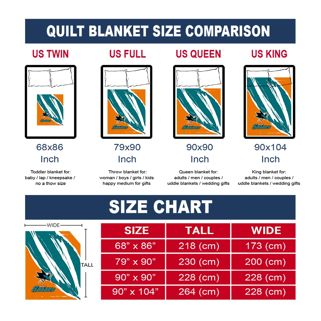 Wrap yourself in warmth and pride with the San Jose Sharks Stroke Art Teal White Quilt Blanket from the San Jose Sharks Blankets collection at Yes That Blanket. Made from 100% premium quilting-weight polyester blended with a touch of microfiber, this quilt offers a smooth, soft finish you’ll love. Choose between two quilting styles—Stipple or Diagonal—and enjoy the comfort of a cotton-filled layer inside that adds extra coziness for every season. The border is available in classic black or white, giving your design a clean, timeless edge.