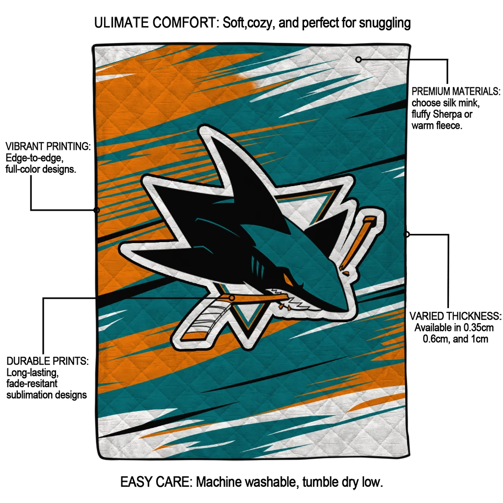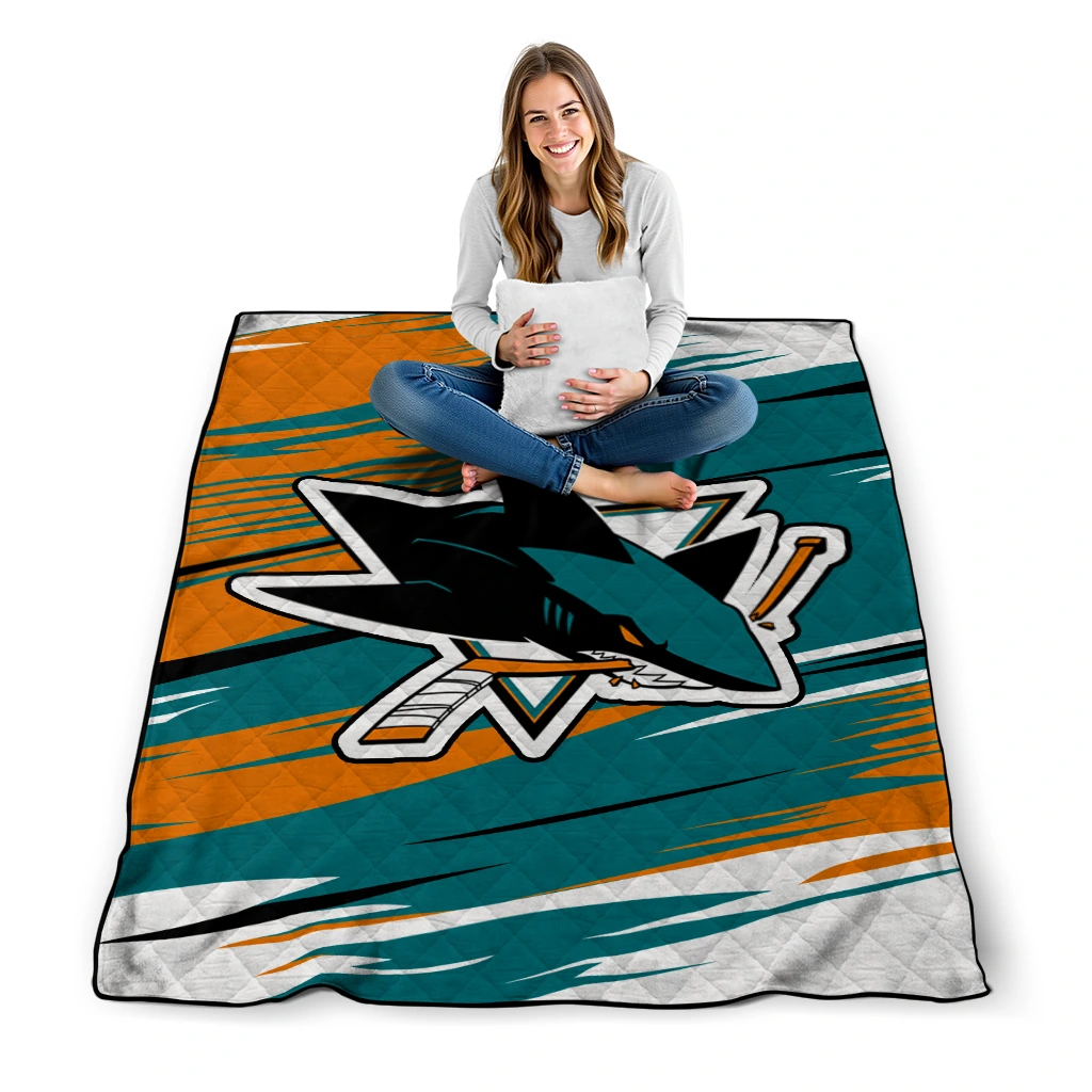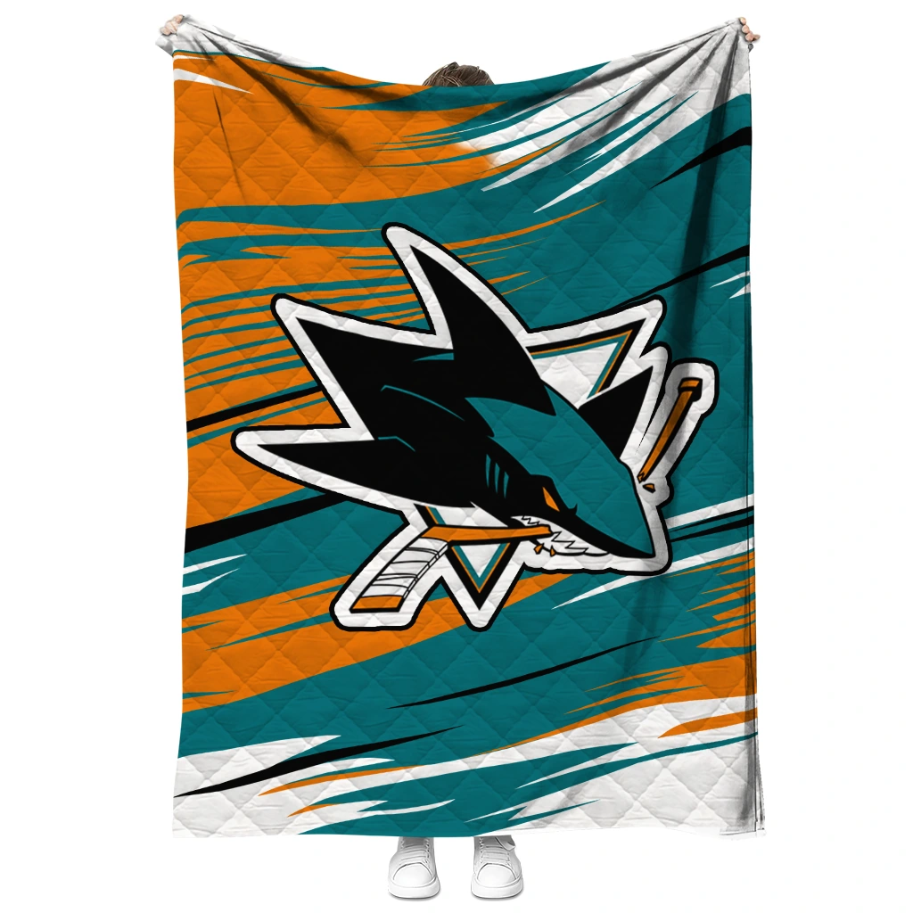 San Jose Sharks Wild Lines Teal White Quilt Blanket