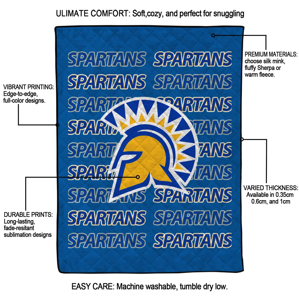 Wrap yourself in warmth and pride with the San Jose State Spartans Bold Red Blue Quilt Blanket from the San Jose State Spartans Blankets collection at Yes That Blanket. Made from 100% premium quilting-weight polyester blended with a touch of microfiber, this quilt offers a smooth, soft finish you’ll love. Choose between two quilting styles—Stipple or Diagonal—and enjoy the comfort of a cotton-filled layer inside that adds extra coziness for every season. The border is available in classic black or white, giving your design a clean, timeless edge.