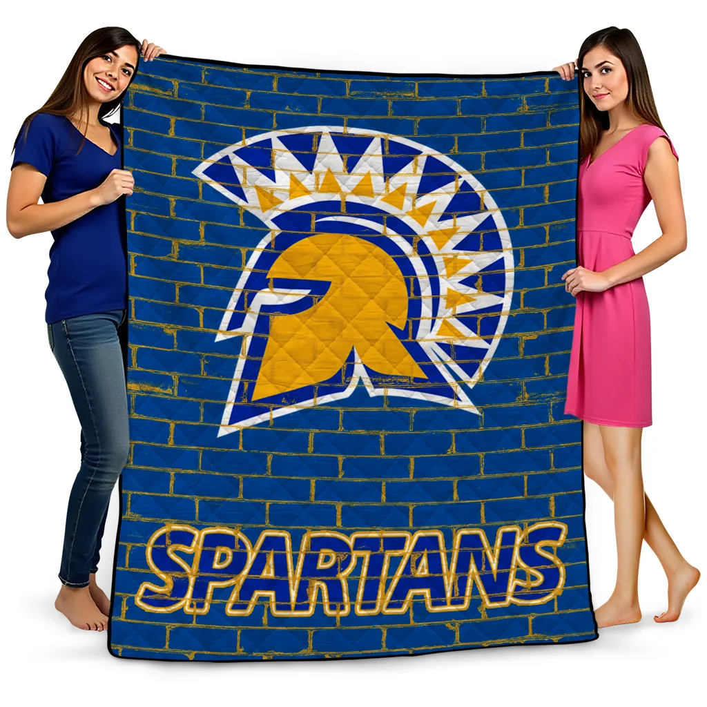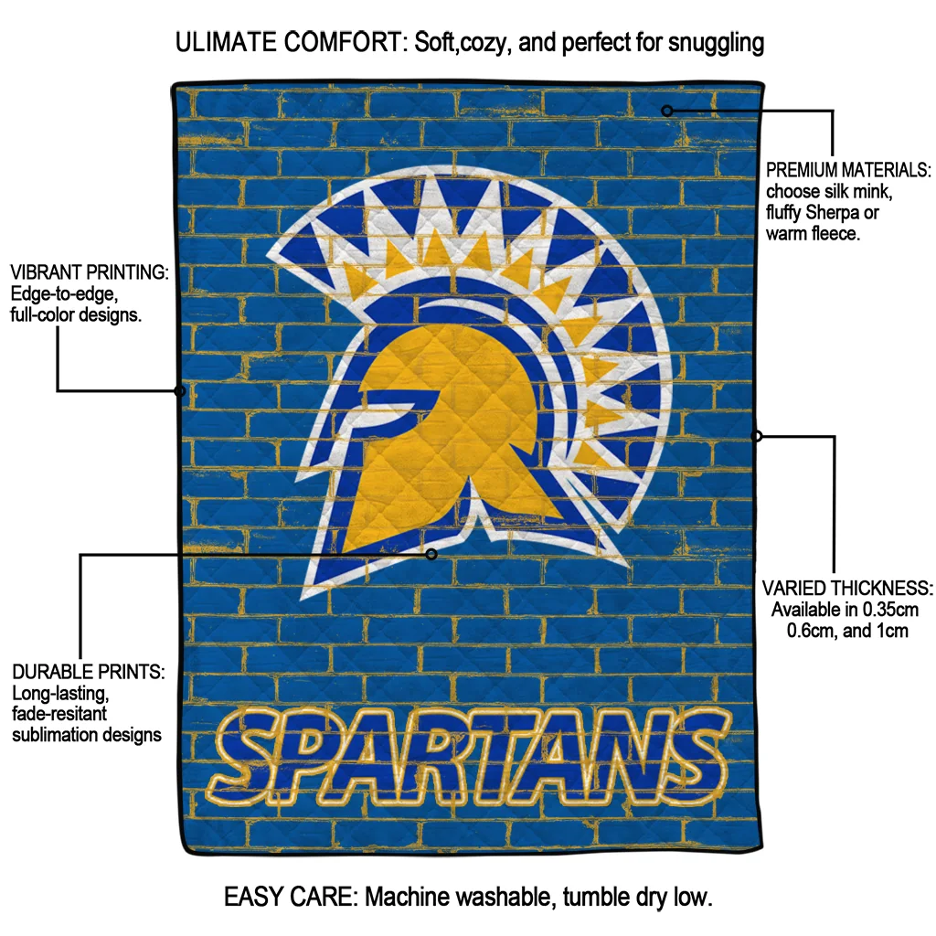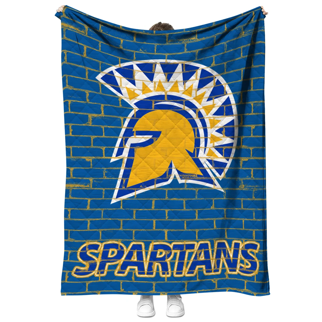 Wrap yourself in warmth and pride with the San Jose State Spartans Brick Grid Blue Quilt Blanket from the San Jose State Spartans Blankets collection at Yes That Blanket. Made from 100% premium quilting-weight polyester blended with a touch of microfiber, this quilt offers a smooth, soft finish you’ll love. Choose between two quilting styles—Stipple or Diagonal—and enjoy the comfort of a cotton-filled layer inside that adds extra coziness for every season. The border is available in classic black or white, giving your design a clean, timeless edge.