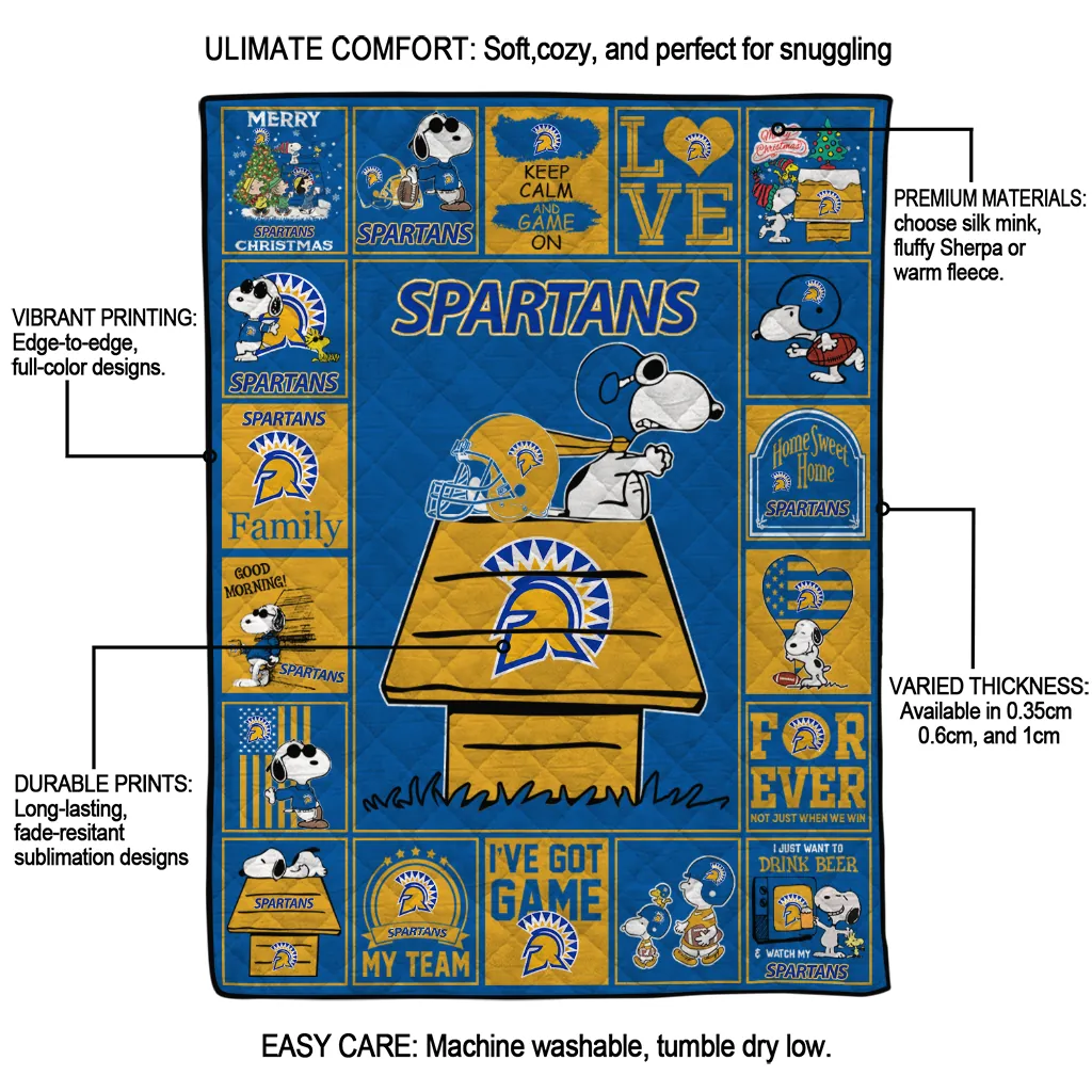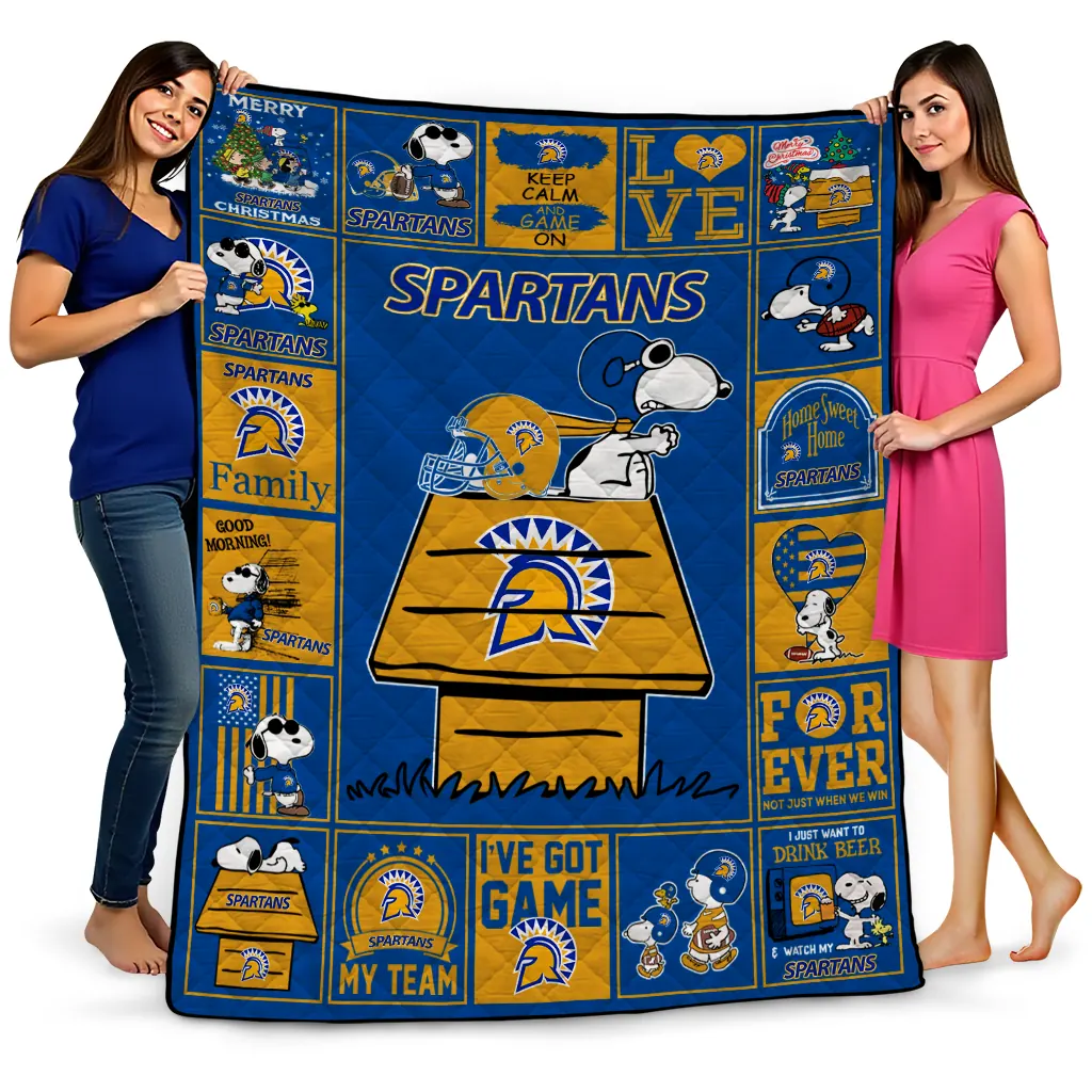 San Jose State Spartans Snoopy Love Blue Quilt Blanket