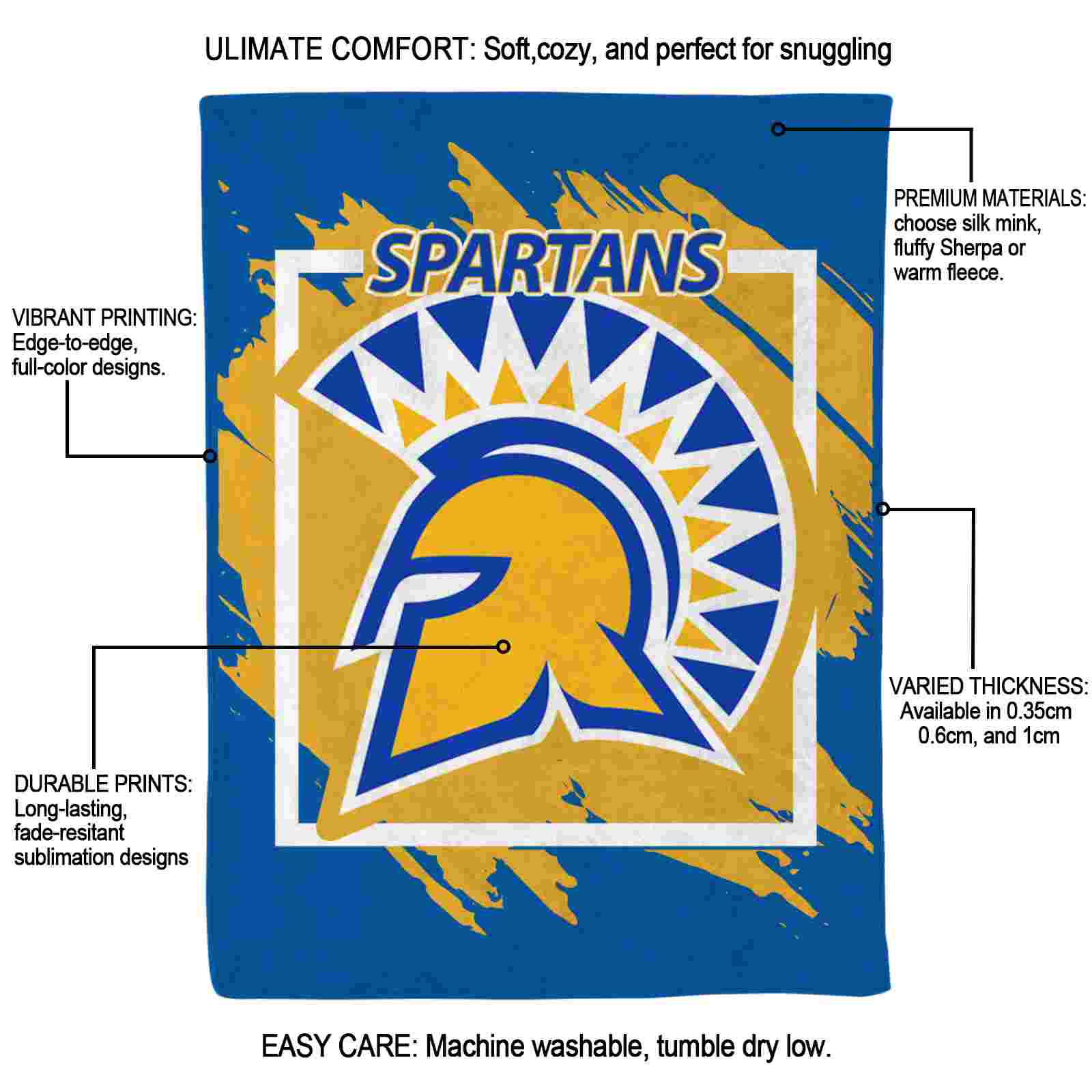 Without a doubt, the San Jose State Spartans Splatter Effect Blue Blanket from San Jose State Spartans Blankets collection is offering true fans a chance to showcase passion in a cool way. Personalize it with your favorite team’s logo or a meaningful name to make it uniquely yours. Isn’t that great? The full-color print ensures vibrant, edge-to-edge designs, bringing your sports enthusiasm to life!