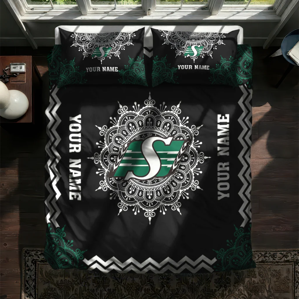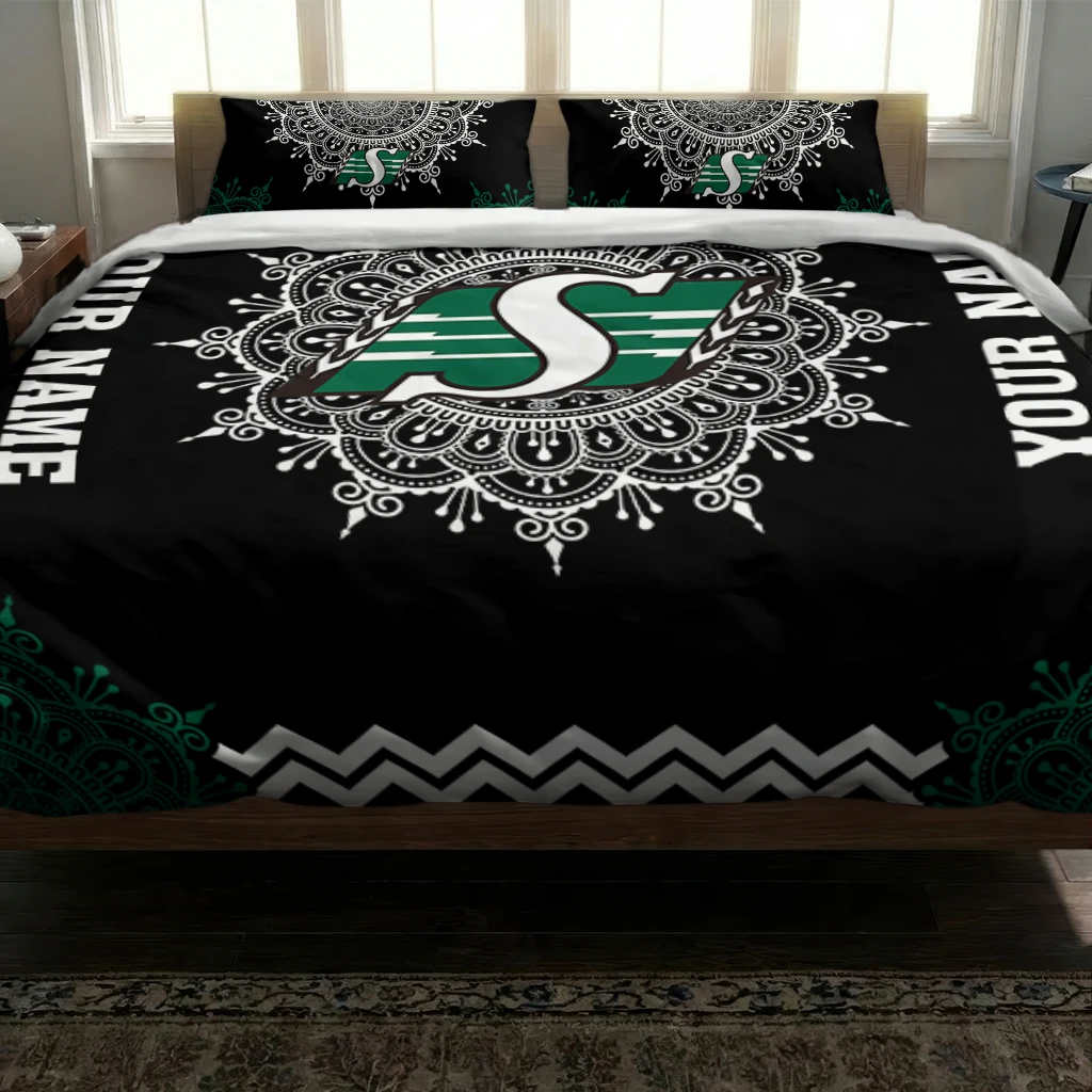 Saskatchewan Roughriders Bedding Set – Custom Mandala Lacework Black White
