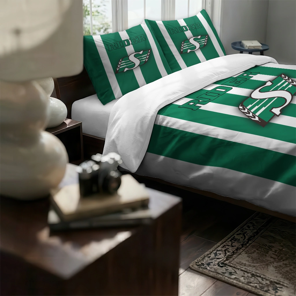 Saskatchewan Roughriders Bedding Set – Stripe Style Green White