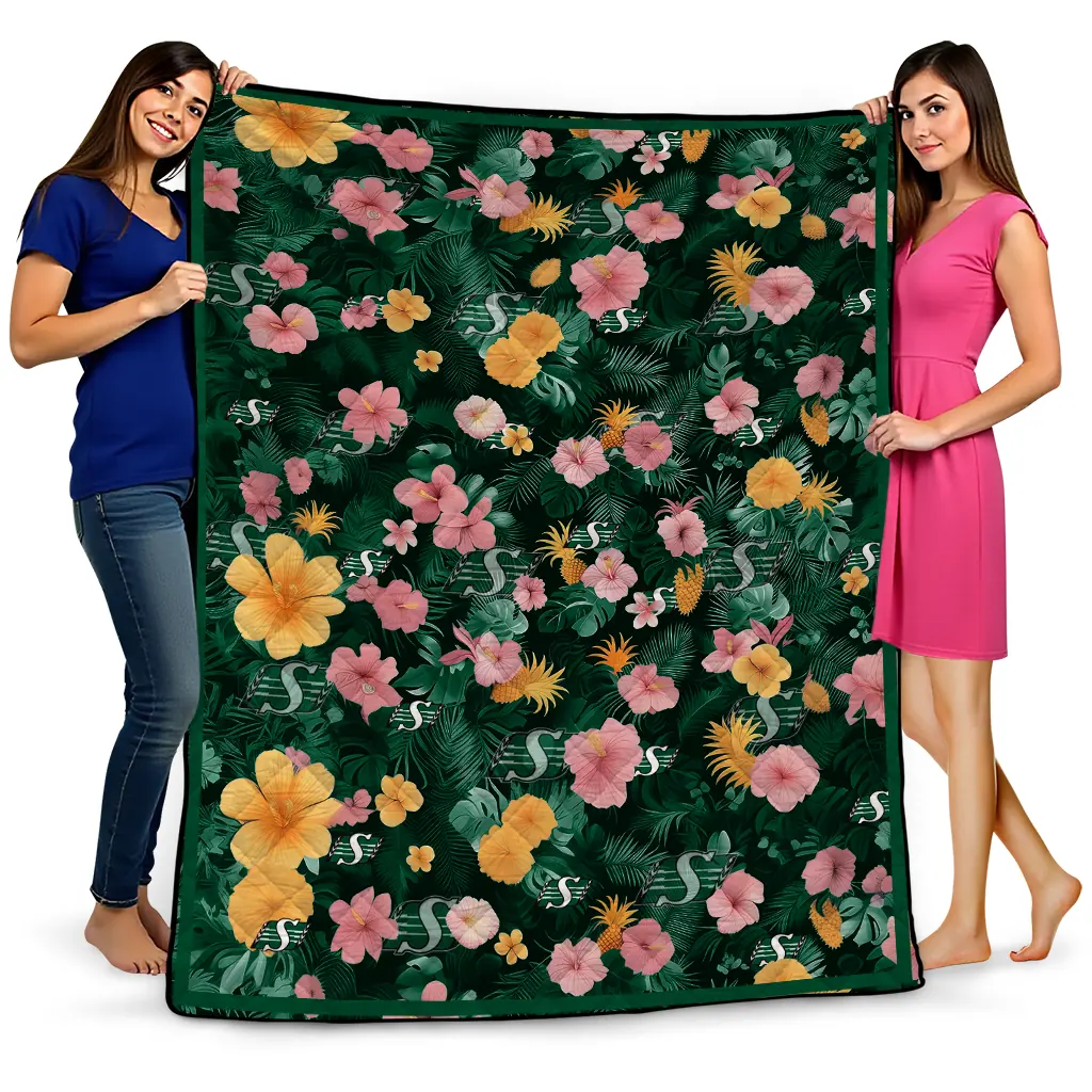 Saskatchewan Roughriders Hibiscus Foliage Green Quilt Blanket