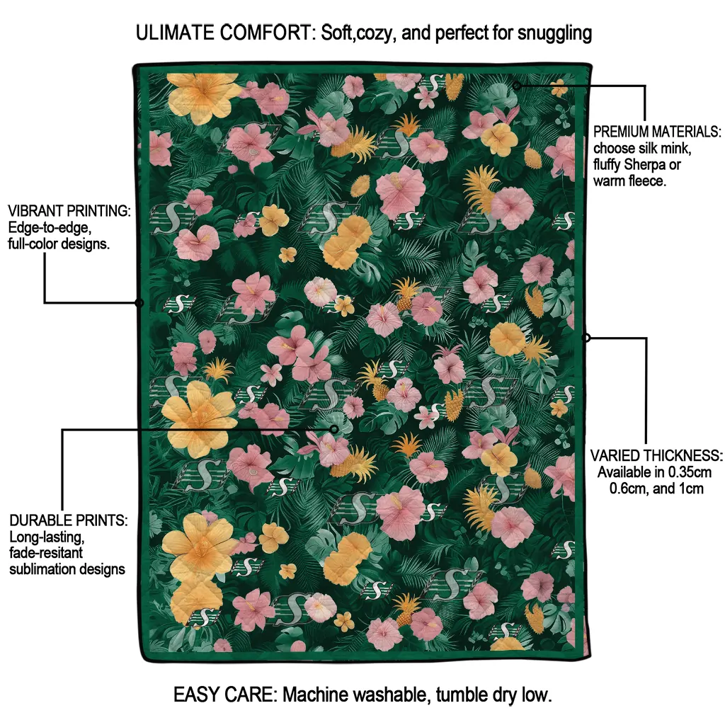 Be the first to review “Saskatchewan Roughriders Hibiscus Foliage Green Quilt Blanket”