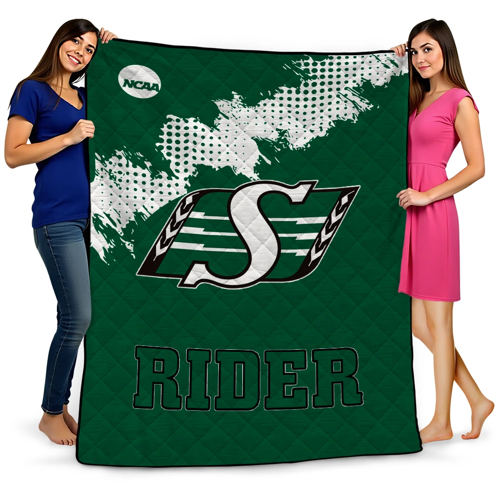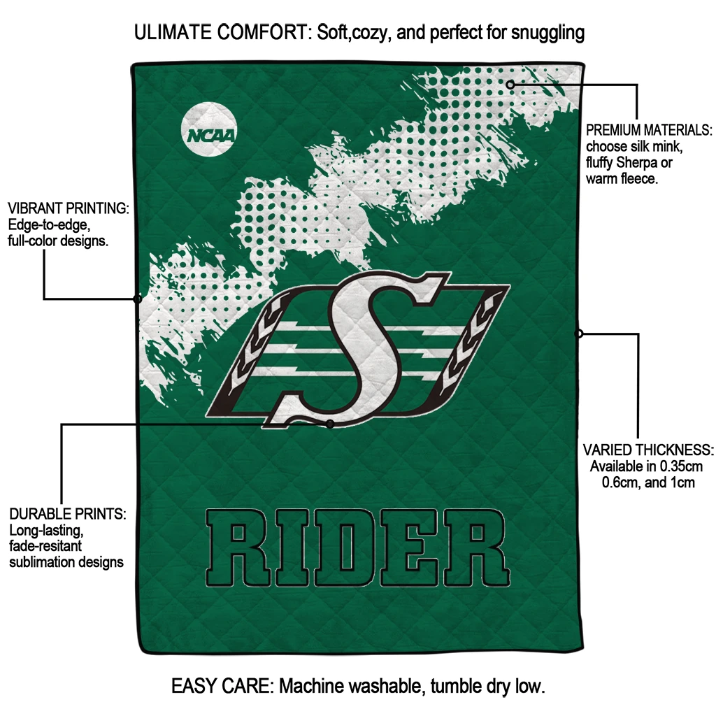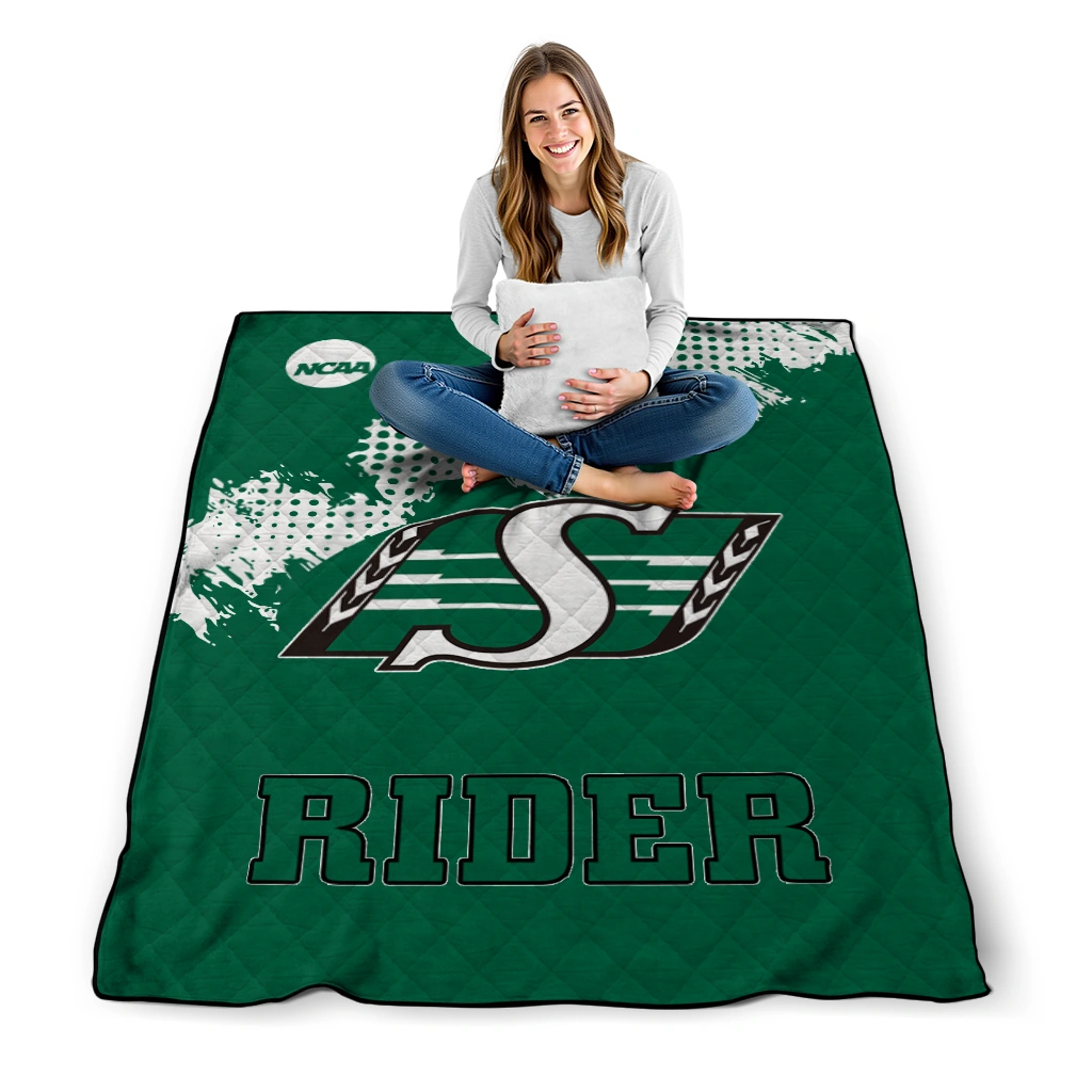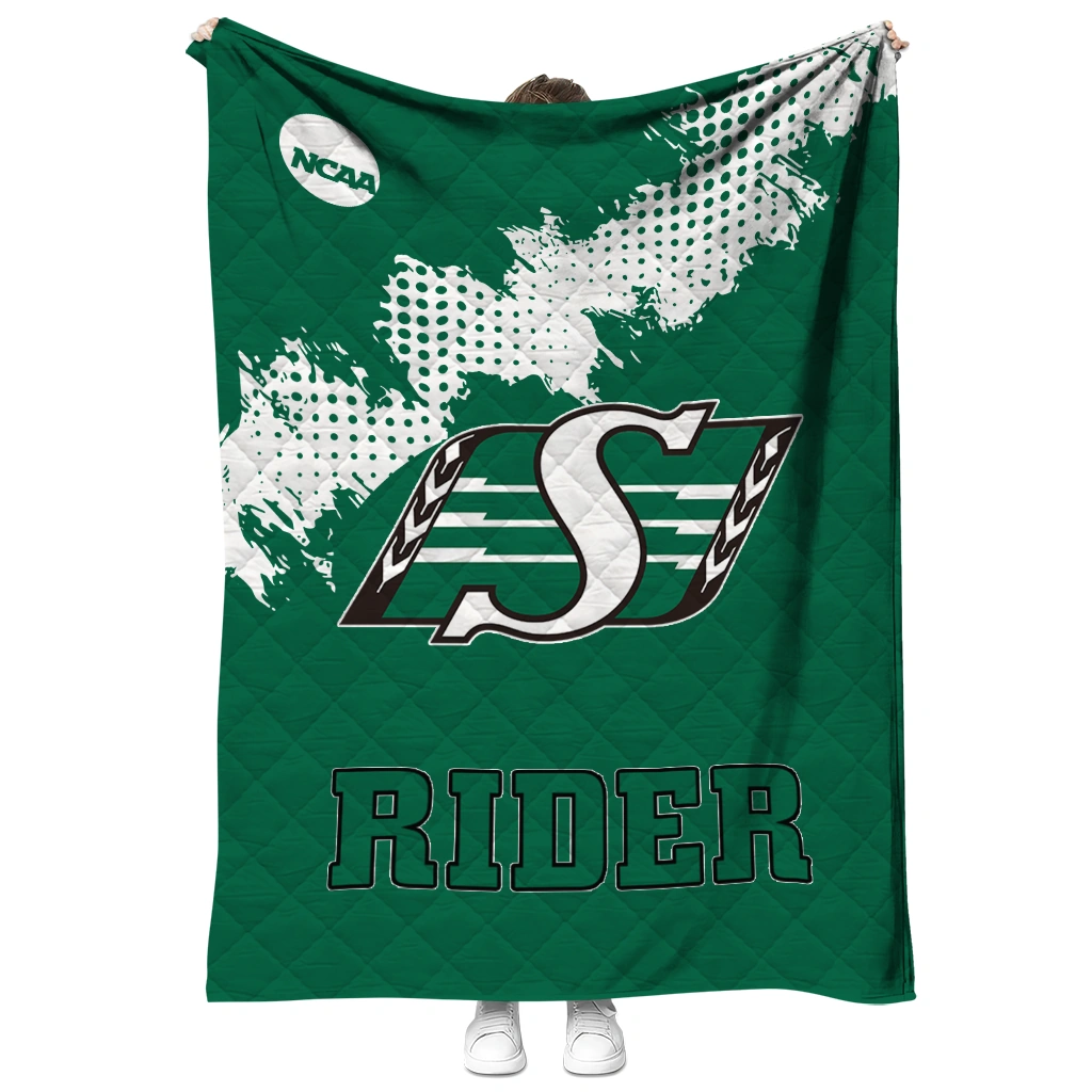 Wrap yourself in warmth and pride with the Saskatchewan Roughriders Paint Trail Green Quilt Blanket from the Saskatchewan Roughriders Blankets collection at Yes That Blanket. Made from 100% premium quilting-weight polyester blended with a touch of microfiber, this quilt offers a smooth, soft finish you’ll love. Choose between two quilting styles—Stipple or Diagonal—and enjoy the comfort of a cotton-filled layer inside that adds extra coziness for every season. The border is available in classic black or white, giving your design a clean, timeless edge.
