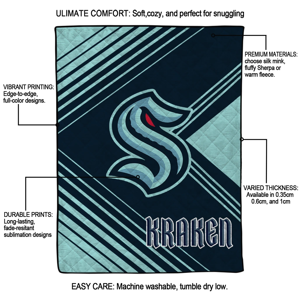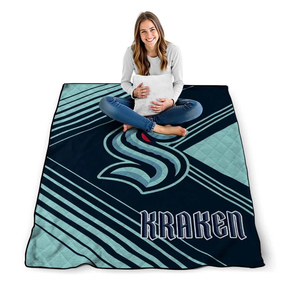 The Seattle Kraken Arrow Layers Blue Quilt Blanket is more than a blanket—it’s everyday comfort, thoughtfully made. Crafted from premium quilting fabric with a soft microfiber touch, it offers a smooth hand-feel and lasting coziness. Layered quilting with a cotton-filled core provides adaptable warmth across seasons while maintaining a clean, tailored look on your bed or sofa.