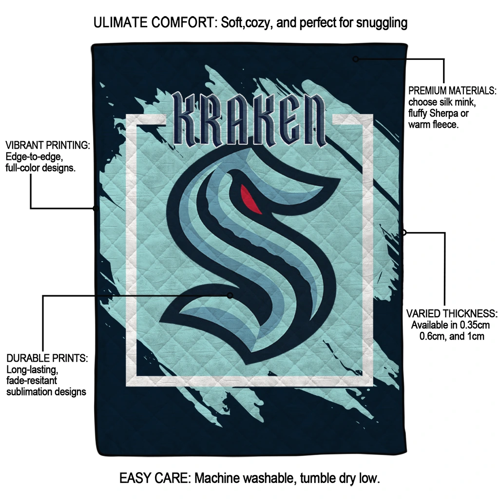 The Seattle Kraken Block Border Blue Quilt Blanket is more than a blanket—it’s everyday comfort, thoughtfully made. Crafted from premium quilting fabric with a soft microfiber touch, it offers a smooth hand-feel and lasting coziness. Layered quilting with a cotton-filled core provides adaptable warmth across seasons while maintaining a clean, tailored look on your bed or sofa.