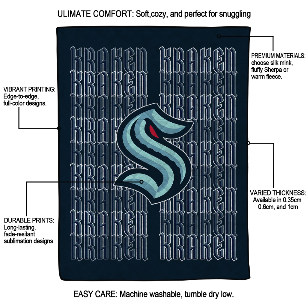 The Seattle Kraken Bold Red Blue Quilt Blanket is more than a blanket—it’s everyday comfort, thoughtfully made. Crafted from premium quilting fabric with a soft microfiber touch, it offers a smooth hand-feel and lasting coziness. Layered quilting with a cotton-filled core provides adaptable warmth across seasons while maintaining a clean, tailored look on your bed or sofa.