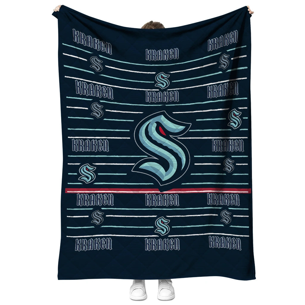 Seattle Kraken Handdrawn Stripes Blue Quilt Blanket