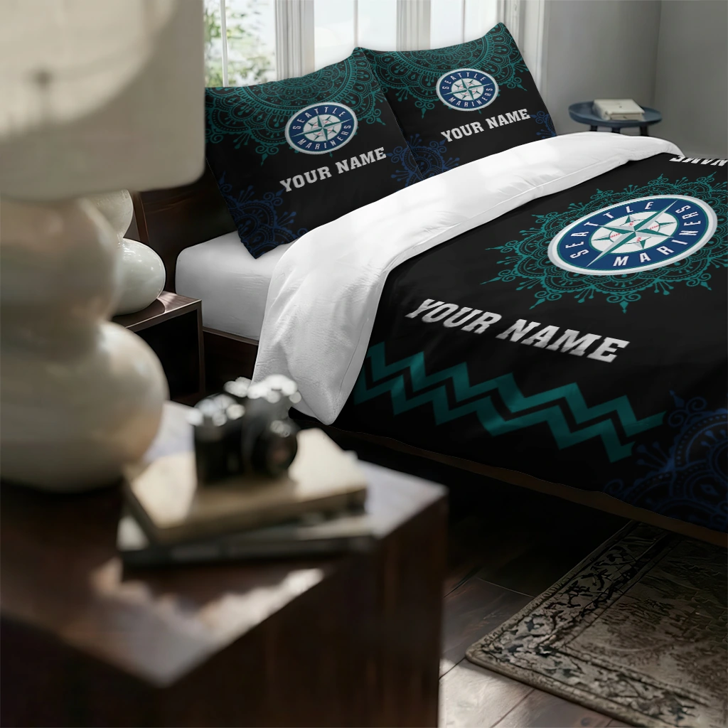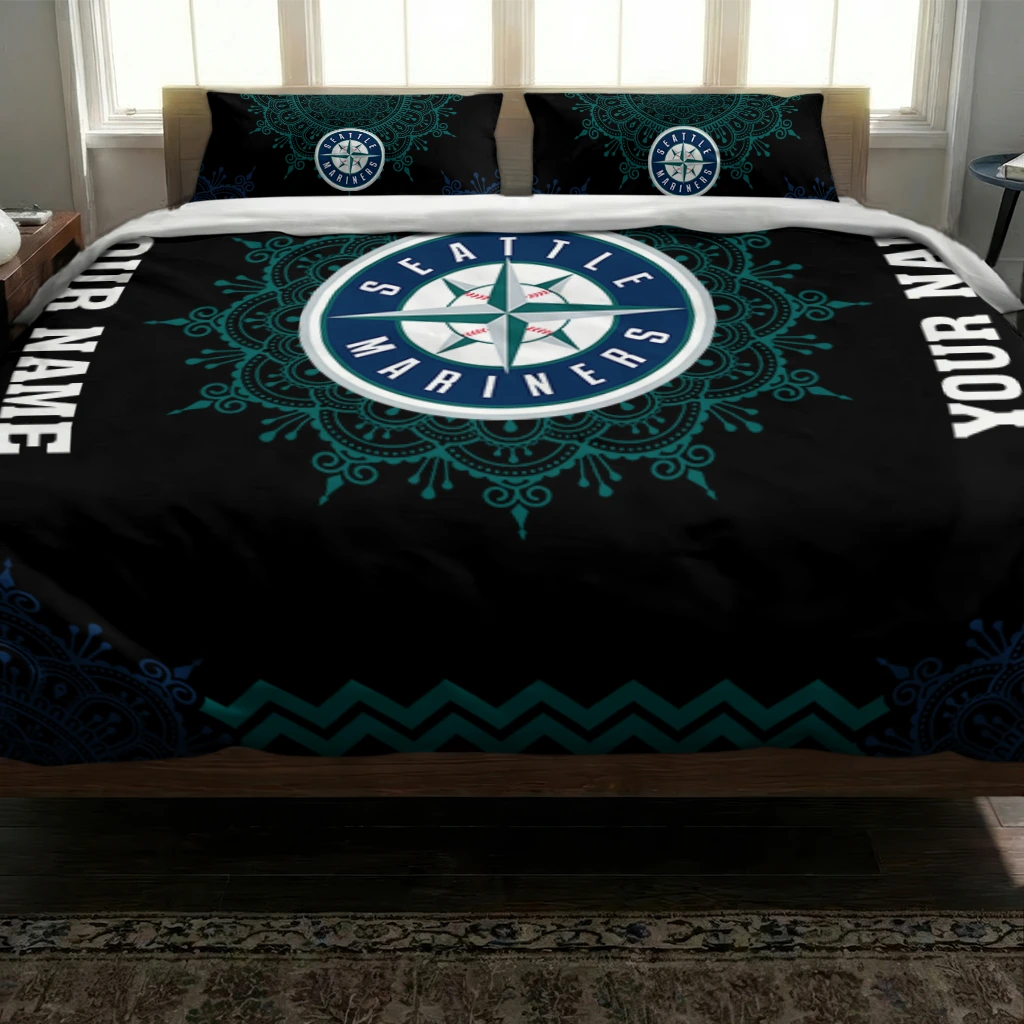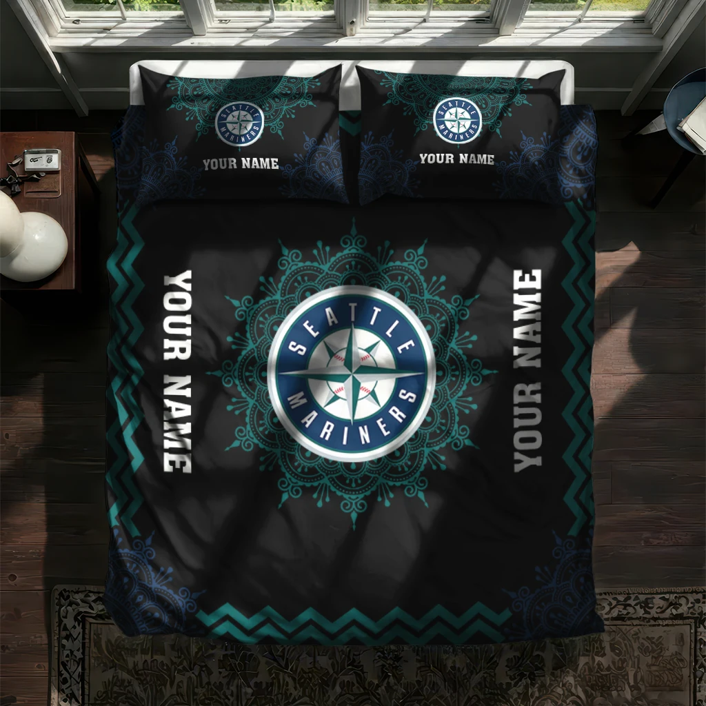 Seattle Mariners Bedding Set – Personalized Mandala Lacework Black Blue