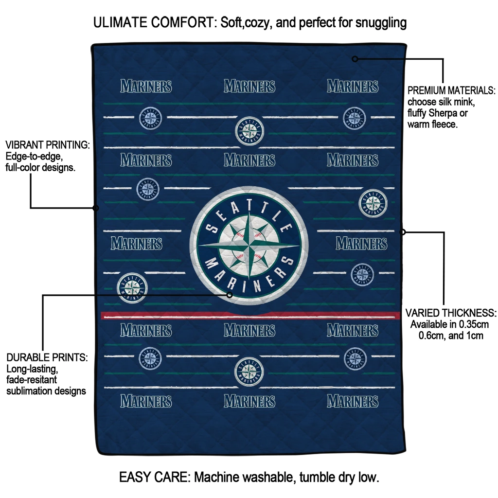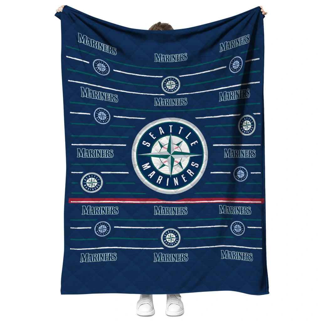 Seattle Mariners Handdrawn Stripes Navy Blue Quilt Blanket