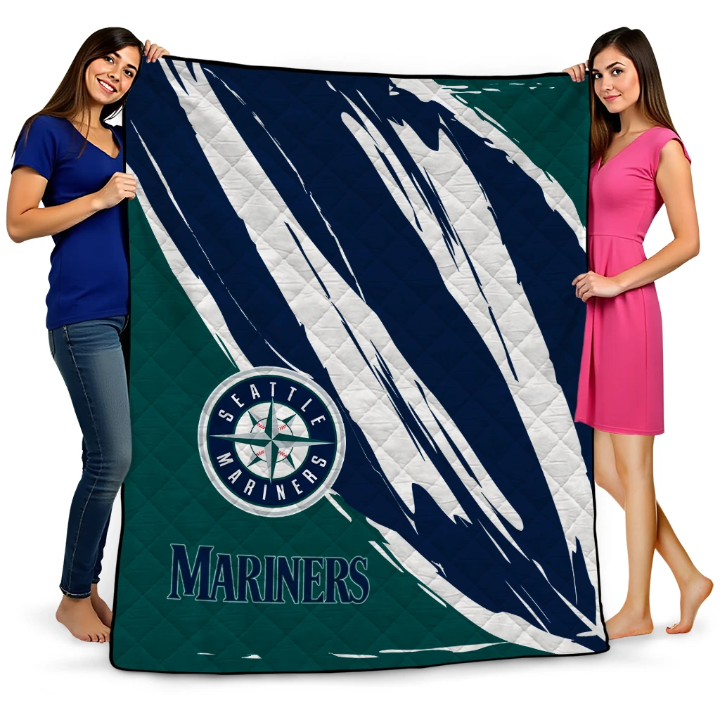 Seattle Mariners Stroke Art Navy Blue White Quilt Blanket