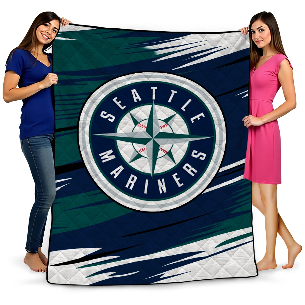Wrap yourself in warmth and pride with the Seattle Mariners Wild Lines Navy Blue White Quilt Blanket from the Seattle Mariners Blankets collection at Yes That Blanket. Made from 100% premium quilting-weight polyester blended with a touch of microfiber, this quilt offers a smooth, soft finish you’ll love. Choose between two quilting styles—Stipple or Diagonal—and enjoy the comfort of a cotton-filled layer inside that adds extra coziness for every season. The border is available in classic black or white, giving your design a clean, timeless edge.