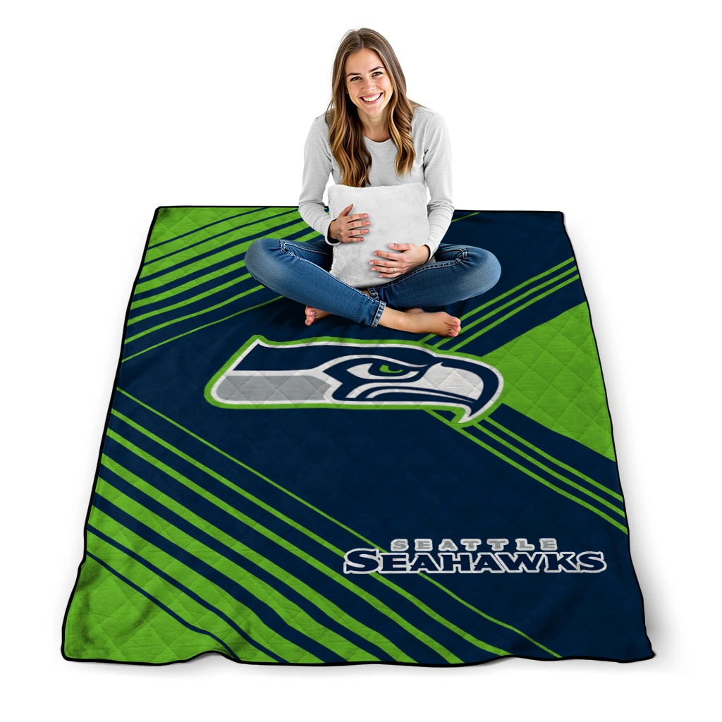 Wrap yourself in warmth and pride with the Seattle Seahawks Arrow Layers Blue Quilt Blanket from the Seattle Seahawks Blankets collection at Yes That Blanket. Made from 100% premium quilting-weight polyester blended with a touch of microfiber, this quilt offers a smooth, soft finish you’ll love. Choose between two quilting styles—Stipple or Diagonal—and enjoy the comfort of a cotton-filled layer inside that adds extra coziness for every season. The border is available in classic black or white, giving your design a clean, timeless edge.