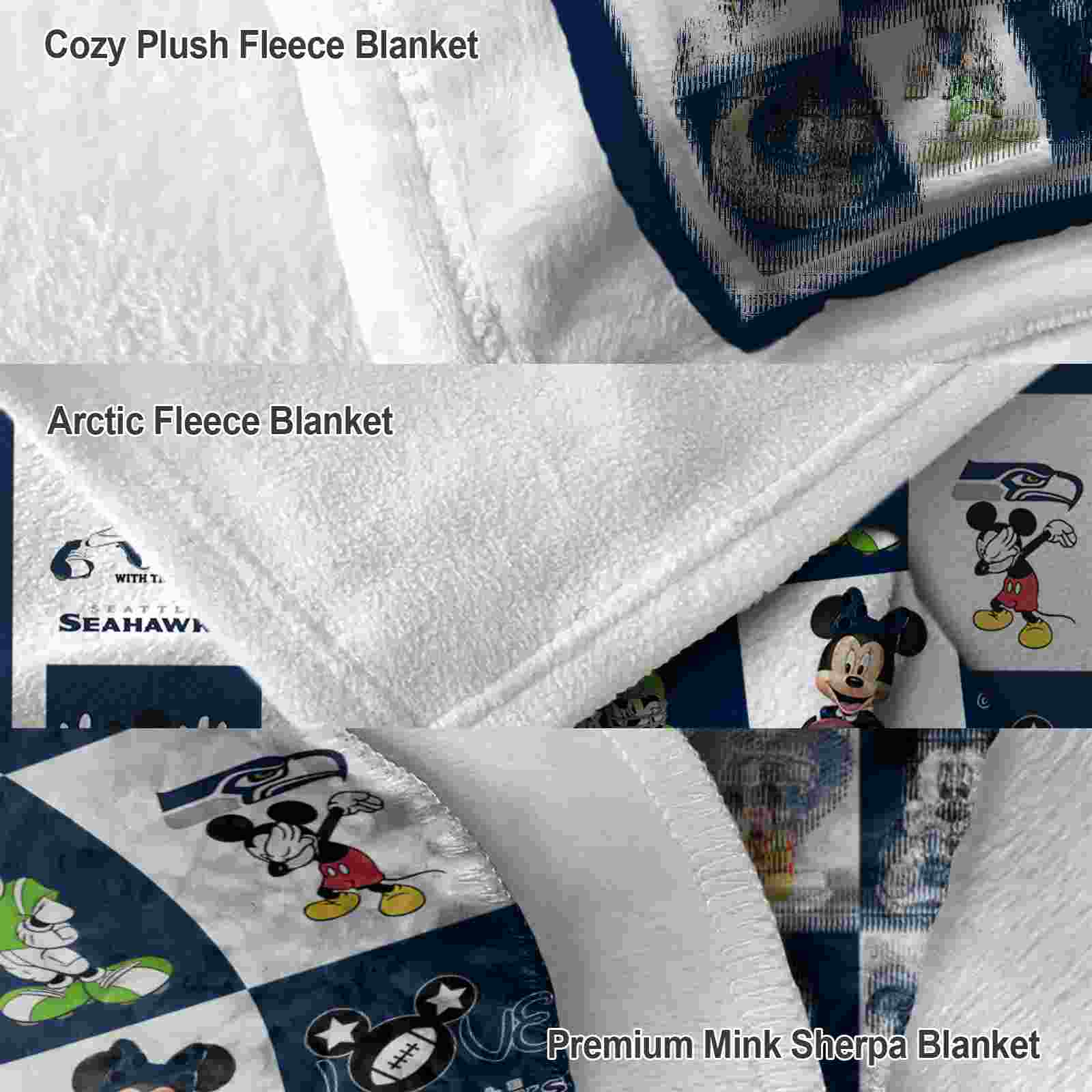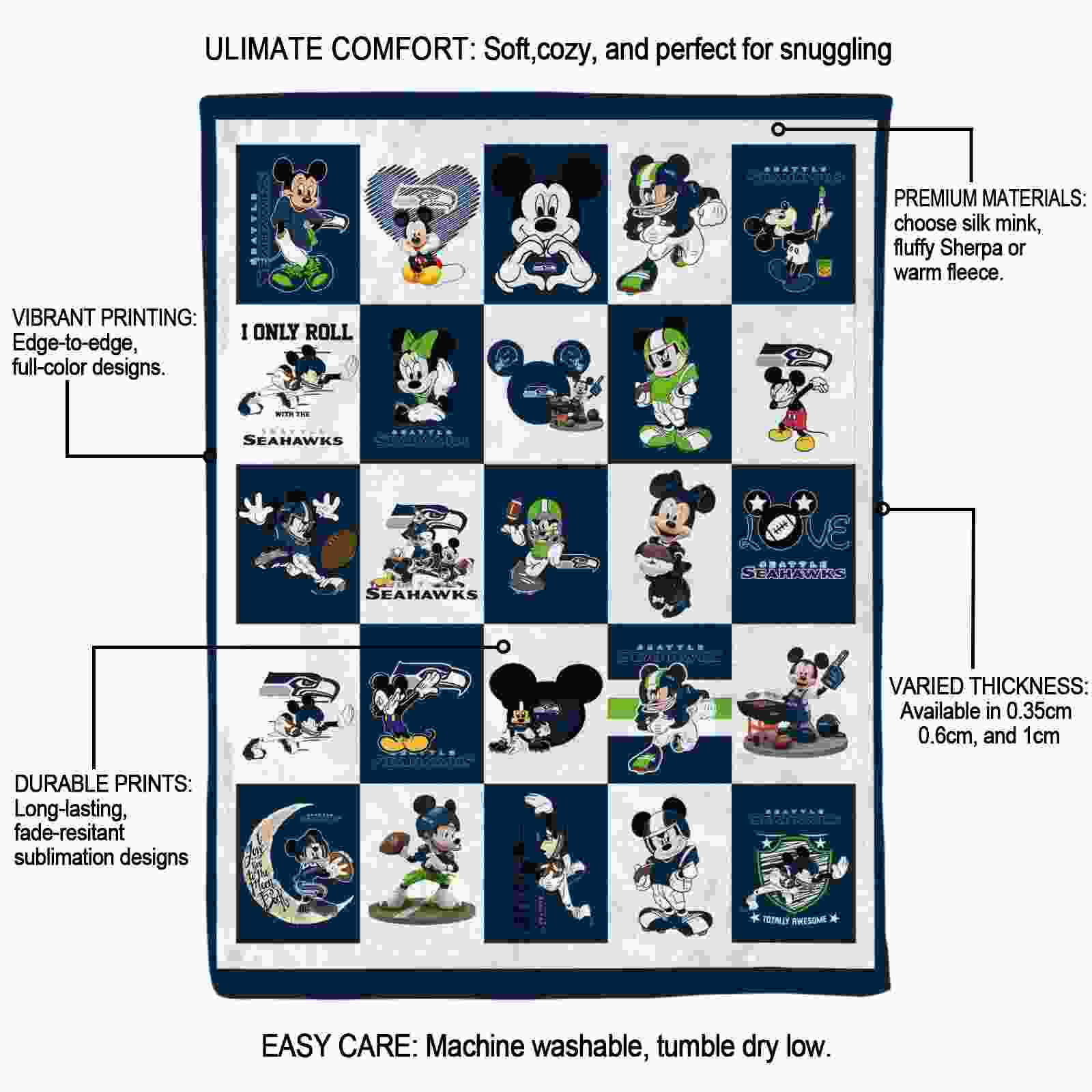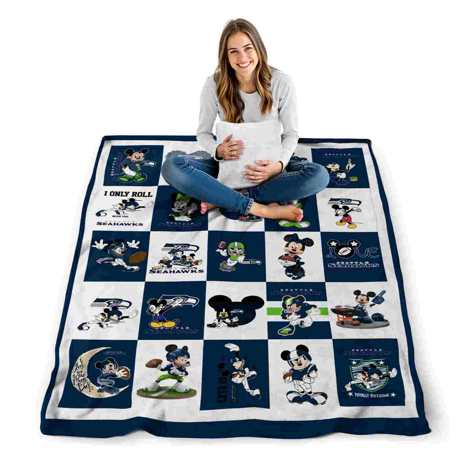 Without a doubt, the Seattle Seahawks Mickey Minnie Blue White Blanket from Seattle Seahawks Blankets collection is offering true fans a chance to showcase passion in a cool way. Personalize it with your favorite team’s logo or a meaningful name to make it uniquely yours. Isn’t that great? The full-color print ensures vibrant, edge-to-edge designs, bringing your sports enthusiasm to life!